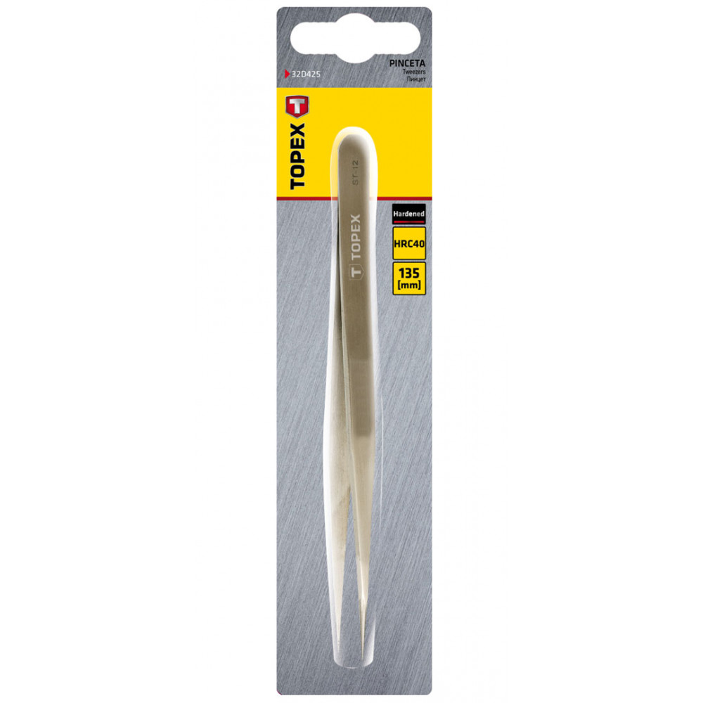 Пинцет TOPEX длиной 135 мм. Предназначен для точных работ. Изготовлен из высококачественной закаленной стали. Бренд TOPEX предназначен для домашних мастеров.