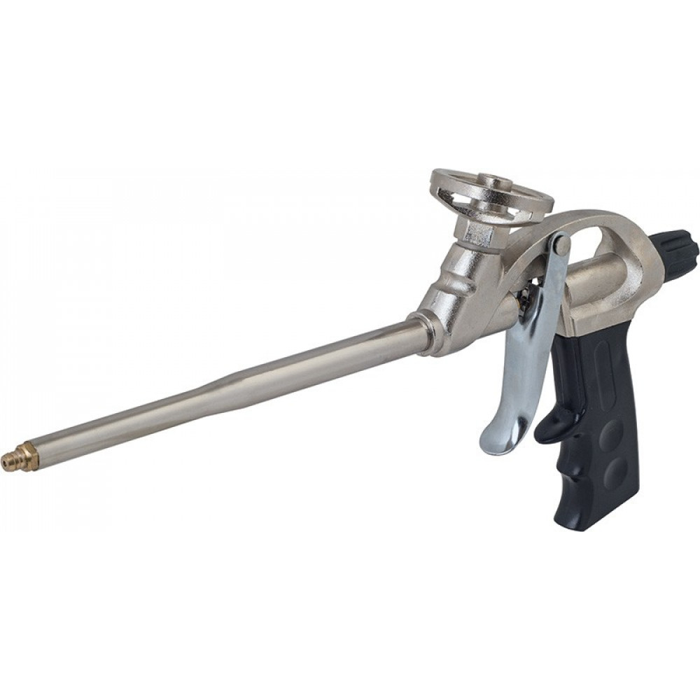 Пистолет для пены модели 81-683 от ТМ МИОЛ оборудован специальным винтом над рукояткой, с помощью которого можно легко контролировать уровень подачи пены. Особое тефлоновое покрытие защищает корпус пистолета от ржавчины и налипания пены во время работы, тем самым существенно увеличивая его долговечность.