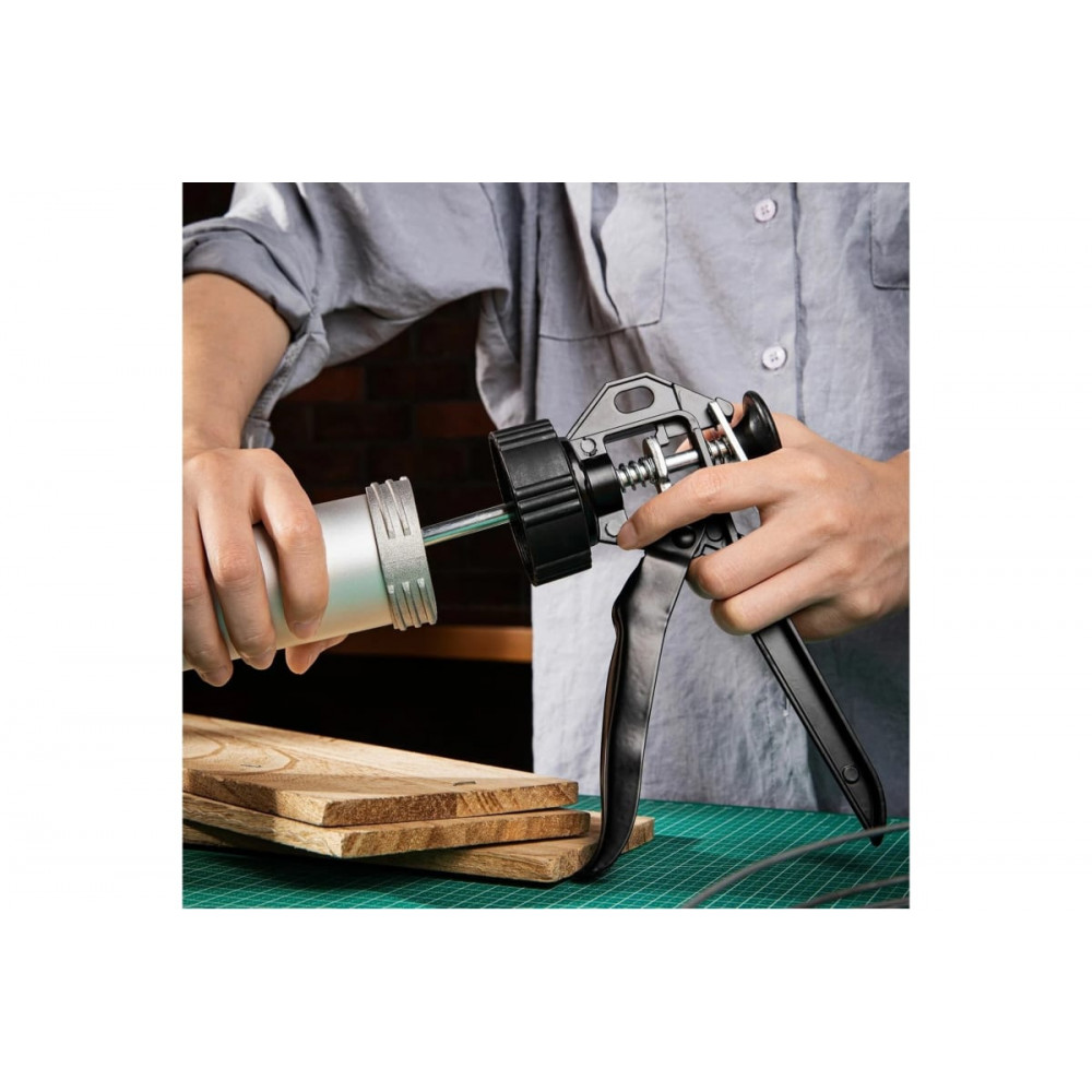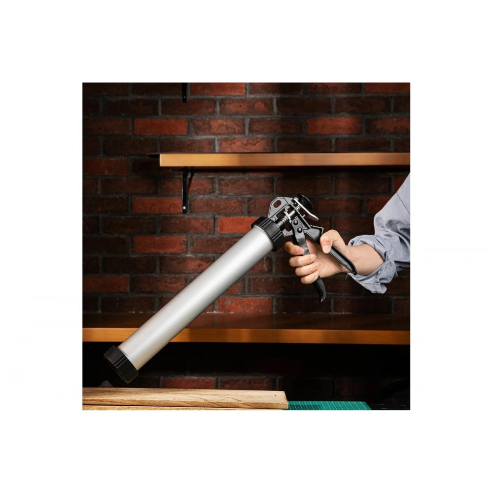 Эргономичный дизайн пистолета обеспечивает удобство использования и снижает нагрузку на руку. Корпус изготовлен из прочных материалов, что гарантирует долговечность инструмента. Простота в использовании позволяет начать работу без особых навыков. Пистолет имеет функцию регулировки подачи материала. Подходит для использования с различными типами герметиков. В комплекте идет наконечник для аккуратного нанесения герметика.