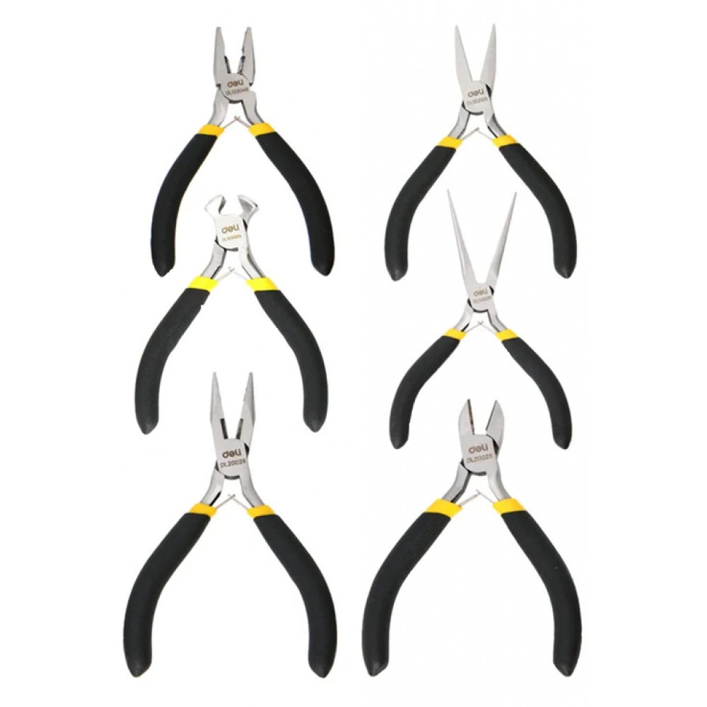 Набор мини‑плоскогубцев Deli DL103205‑6 включает шесть профессиональных инструментов, предназначенных для выполнения различных задач в быту, мастерской или на производстве.
