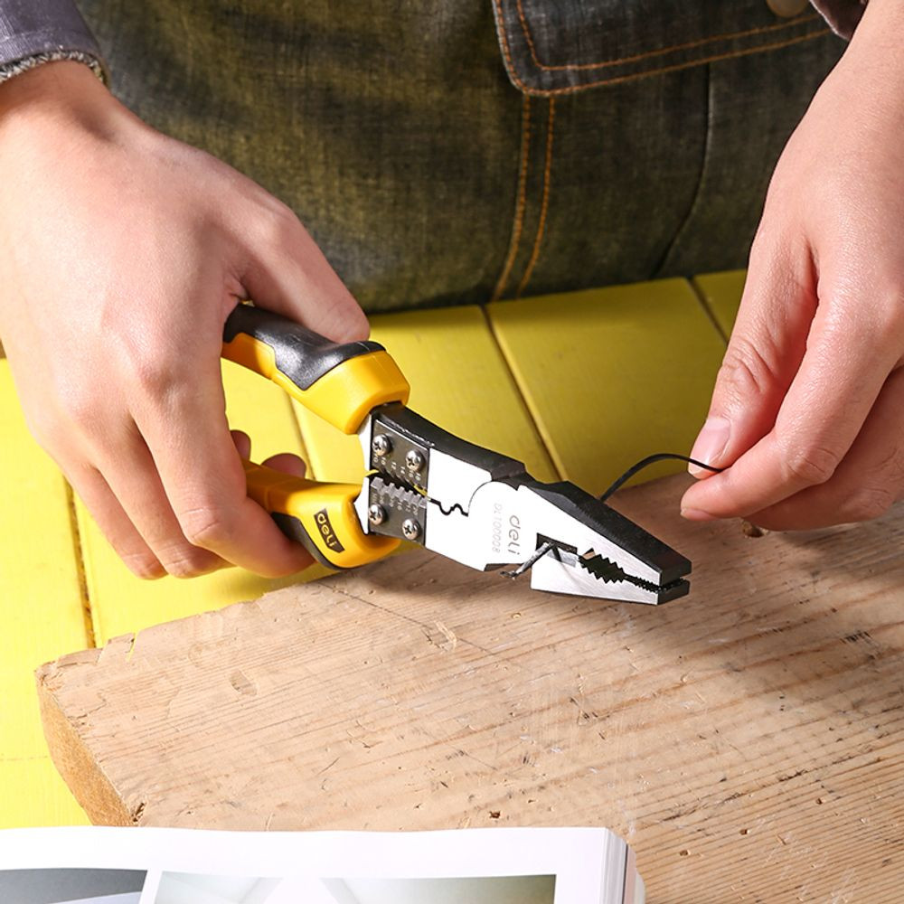 Двухкомпонентная рукоять обеспечивает надежный захват и предотвращает скольжение инструмента в руке, гарантируя комфорт и безопасность во время работы. Высокопрочная хромованадиевая сталь гарантирует долгий срок службы и сохранение первоначальных свойств инструмента. Теперь ремонт и монтаж станут еще проще и быстрее благодаря многофункциональным плоскогубцам DELI.