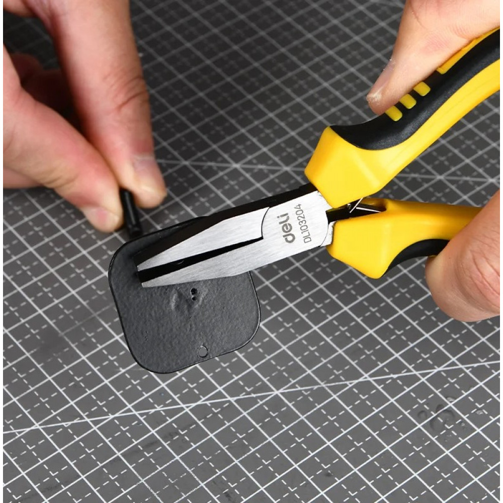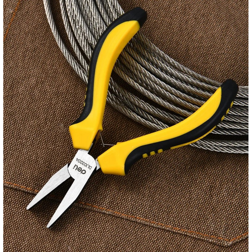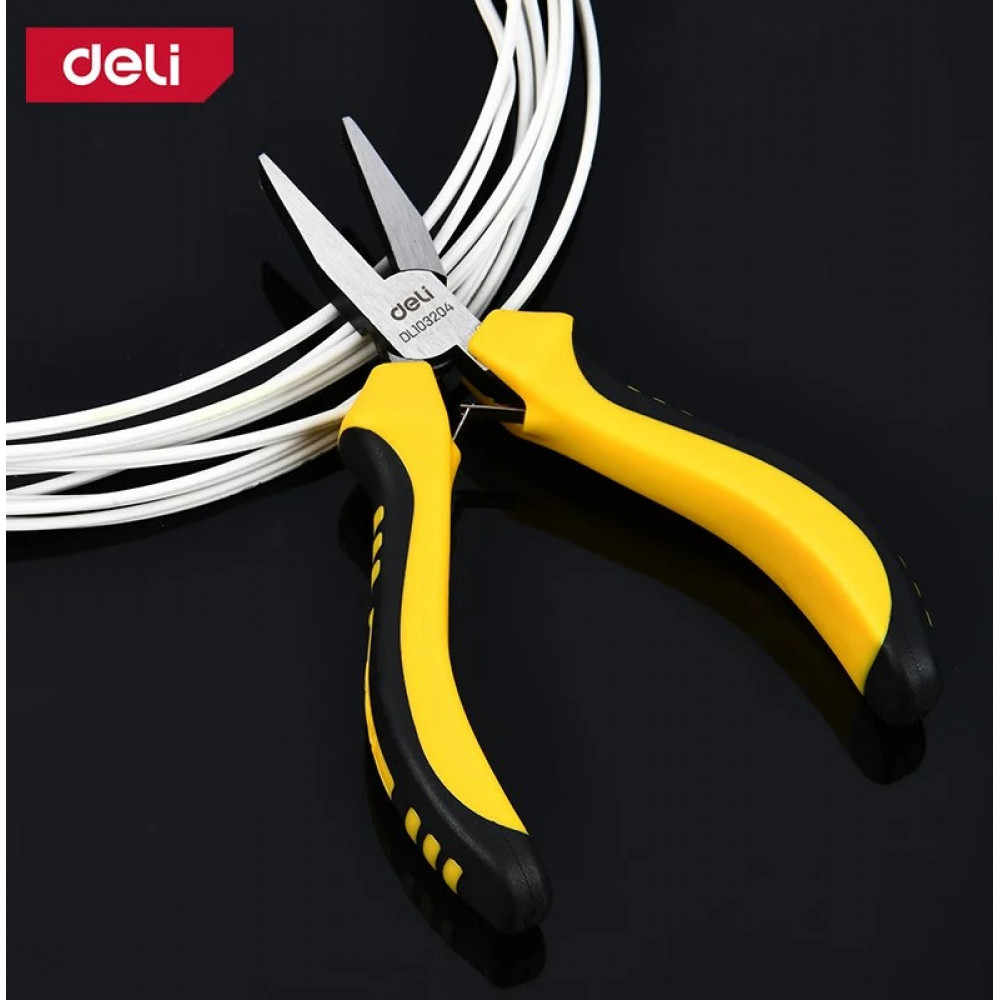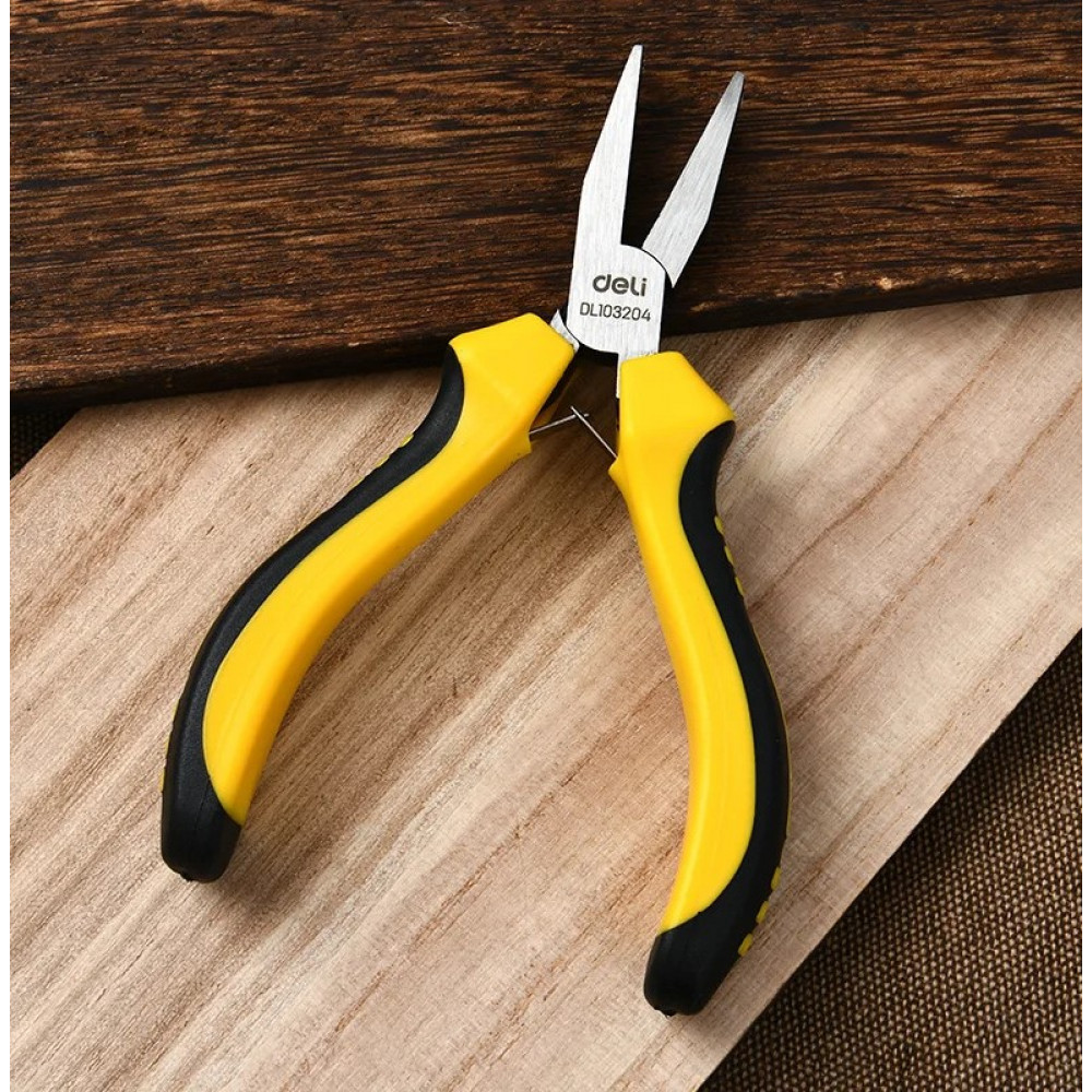Плоскогубцы DL103204 мини без насечки 125мм, двухкомпонентная рукоять Deli