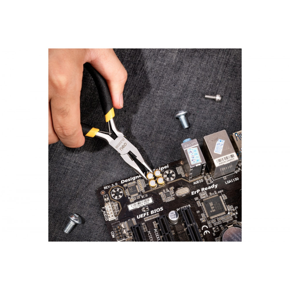 Плоскогубцы DL20026 удлиненные мини 125мм, прорезиненная двухкомпонентная рукоять, Deli представляют собой удобный и надежный инструмент длиной 125 мм, предназначенный для широкого спектра монтажных и ремонтных работ. Двухкомпонентная прорезиненная рукоять обеспечивает превосходный захват и комфорт при работе, а также предотвращает скольжение инструмента в руке.