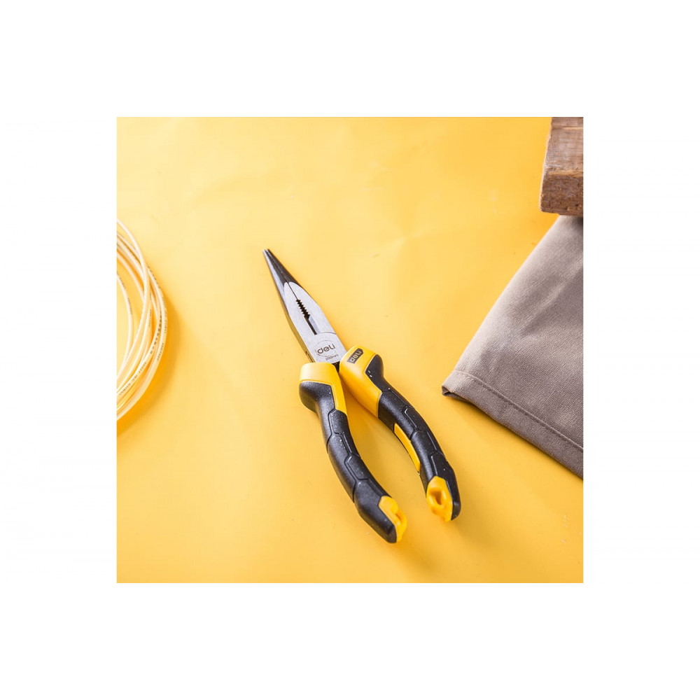 Удлиненные плоскогубцы DL2108Z 200мм, с прорезиненной рукоятью, Deli - это отличный выбор для профессиональных и домашних мастеров, которые ищут надежный и удобный инструмент для работы с различными предметами.