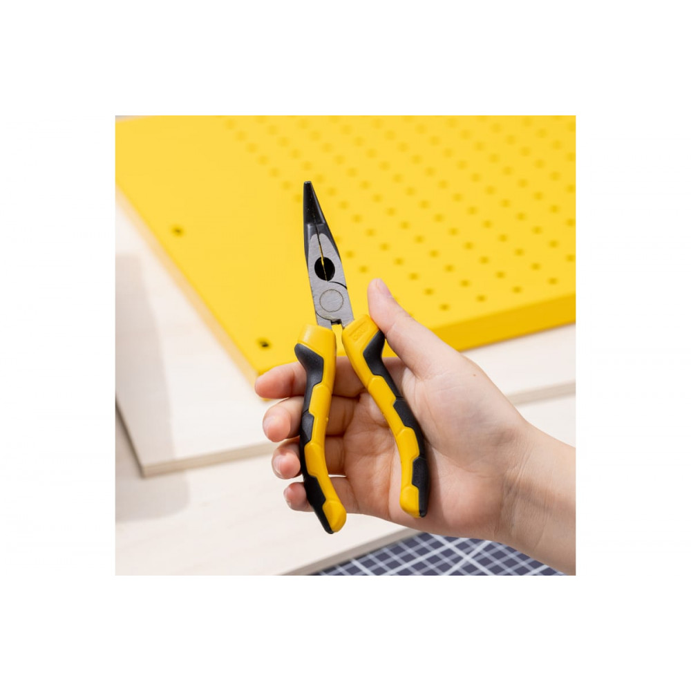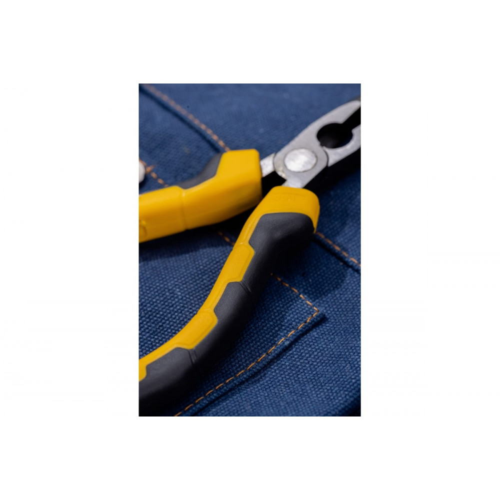 Инструмент выполнен из высококачественной стали, которая обеспечивает прочность и долговечность. Рукоятки плоскогубцев имеют эргономичную форму и покрыты нескользящим материалом для лучшего контроля и удобства использования.