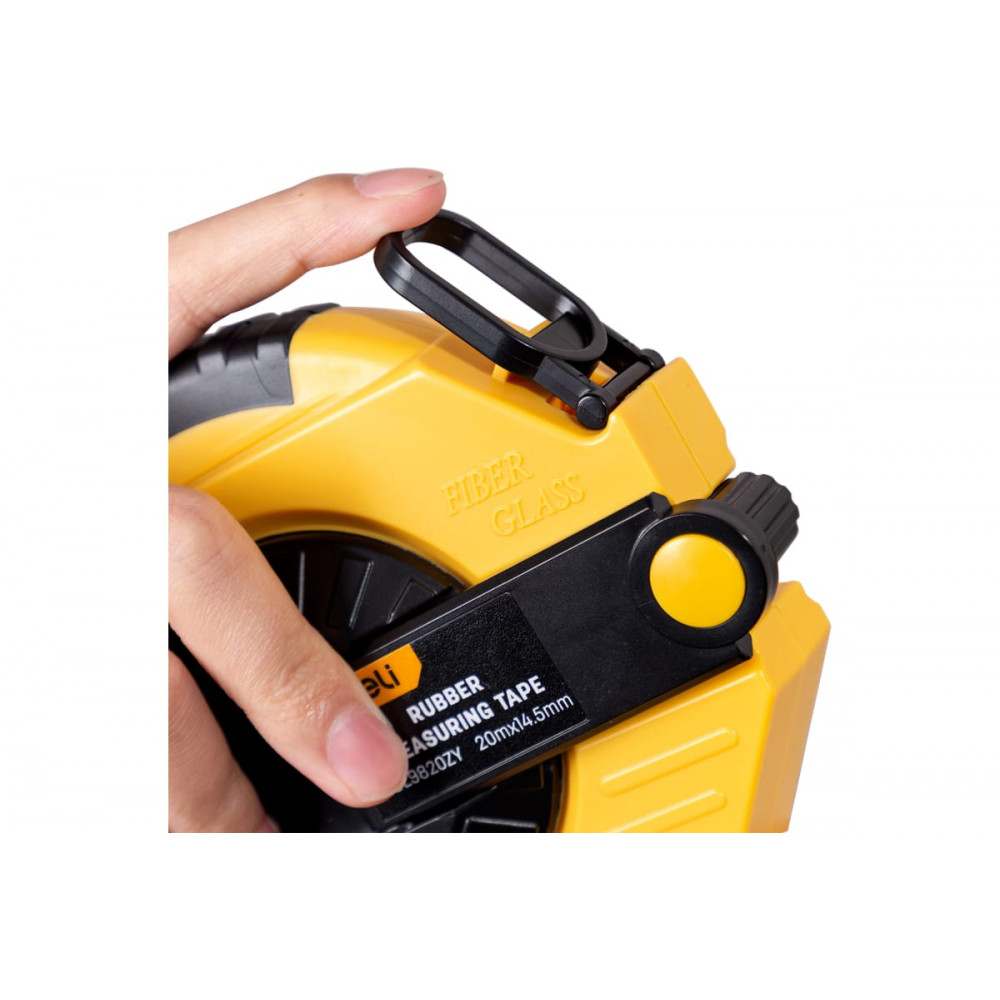 Лента DL9830ZY измерительная 30мx14,5мм стекловолокна и ПВХ, Deli - это измерительная лента длиной 20 метров и шириной 14.5 мм. Она выполнена из стекловолокна и поливинилхлорида (ПВХ), что делает ее прочной и устойчивой к износу. Лента предназначена для измерения различных объектов и расстояний, особенно в строительных и ремонтных работах.Корпус ленты выполнен из прочного ABS-пластика и имеет прорезиненные вставки для защиты от повреждений при падении. На конце ленты имеется пластиковый зацеп с зубцами для лучшего сцепления с поверхностью. Также на ленте предусмотрена ручка для удобства сматывания.