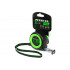 Эта рулетка отличается надежным корпусом из обрезиненного ударопрочного пластика, а также эффективной системой разматывания ленты. Длина ленты составляет 5 метров, а ее ширина равна 19 мм, при этом лента покрыта специальным лаком, который предотвращает возникновение коррозии. Инструмент предусматривает возможность фиксирования измерительной ленты в том положении, которое необходимо в данный момент для произведения замера, а специальный крючок на конце помогает производить более точные замеры, как с внешней стороны, так и с внутренней. Крючок надежно закреплен на конце с помощью трех металлических заклепок.