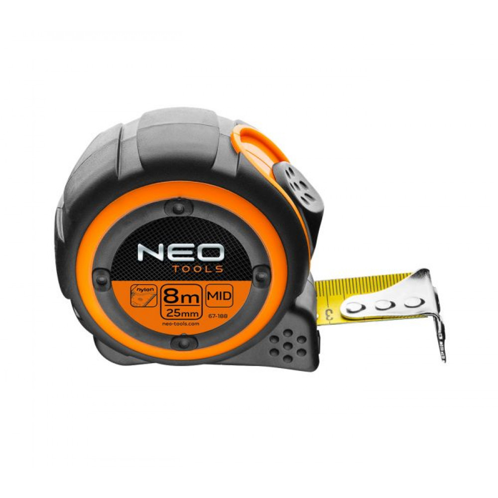 Купить рулетку стальную 67-188 NEO – это значит получить качественный инструмент по доступной цене. Гарантией надежности является изготовление инструмента в соответствии с требованиями европейской директивы о средствах измерений MID.