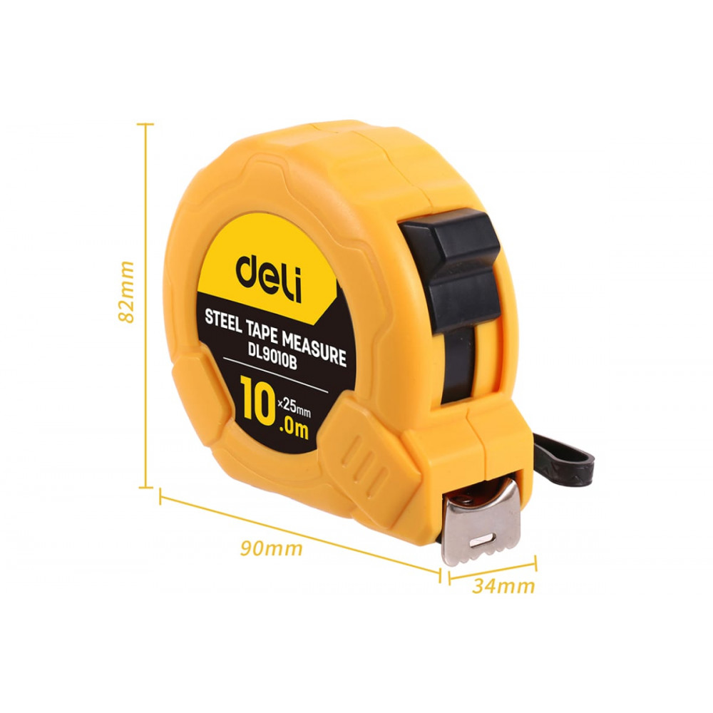 Рулетка DL9010B 10м х 25мм метрическая. корпус ударопрочный Deli - это идеальный выбор для профессиональных и домашних работ.