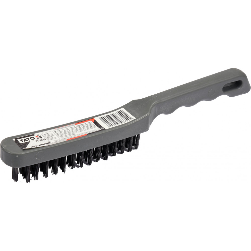 YT-6354 – это щетка с 4я рядами металлического ворса и пластиковой ручкой.