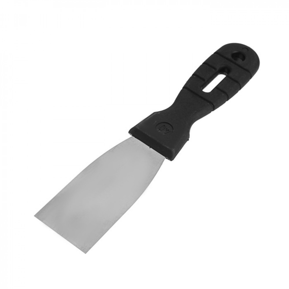 Основание выполнено из прочной нержавеющей стали, что гарантирует шпателю долгий срок службы. Эргономичная пластиковая ручка удобно располагается в ладони и имеет крепкое соединение с рабочим полотном. Шпатель имеет небольшой вес, прост в работе. При необходимости инструмент можно подвешивать, используя отверстие в рукоятке.