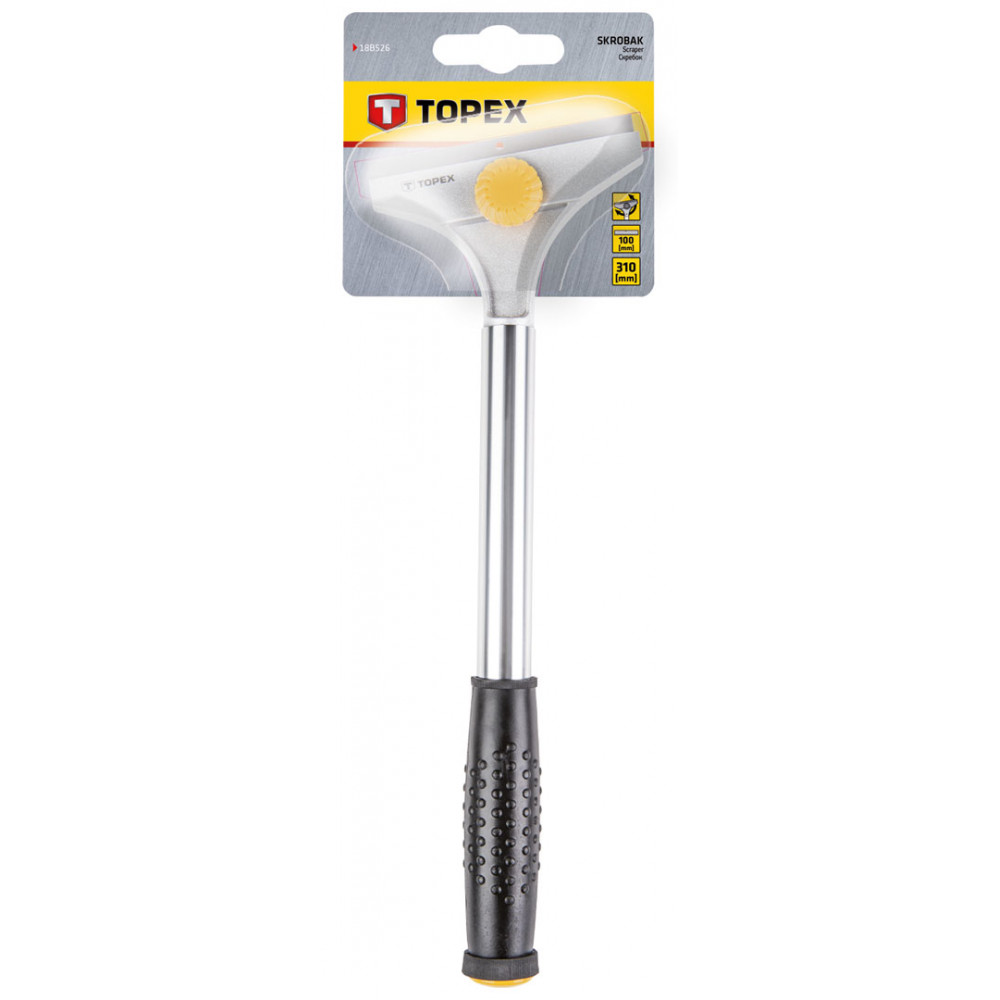 Скребок TOPEX длиной лезвия 100 мм. Предназначен для удаления загрязнений с плоских поверхностей. Ручка длиной 31 см позволяет работать в труднодоступных местах. Эргономичная пластмассовая рукоятка повышает комфорт пользования. Возможность замены лезвий обеспечивает долгий срок службы инструмента. Бренд TOPEX предназначен для домашних мастеров.