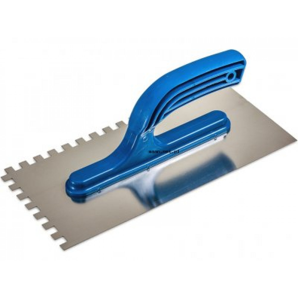 Терка с зубьями MAAN изготовлена из нержавеющей стали, оснащена пластиковой ручкой. Инструмент предназначен для работы с клеевыми составами, в том числе с сильной растекаемостью, для цементных монтажных смесей, на которые клеятся отделочные материалы – плитка, стеновые панели. Зубья, при нанесении раствора на рабочую поверхность, образуют канавки, которые заполняются во время приклейки, что позволяет более экономно использовать клеящие растворы.