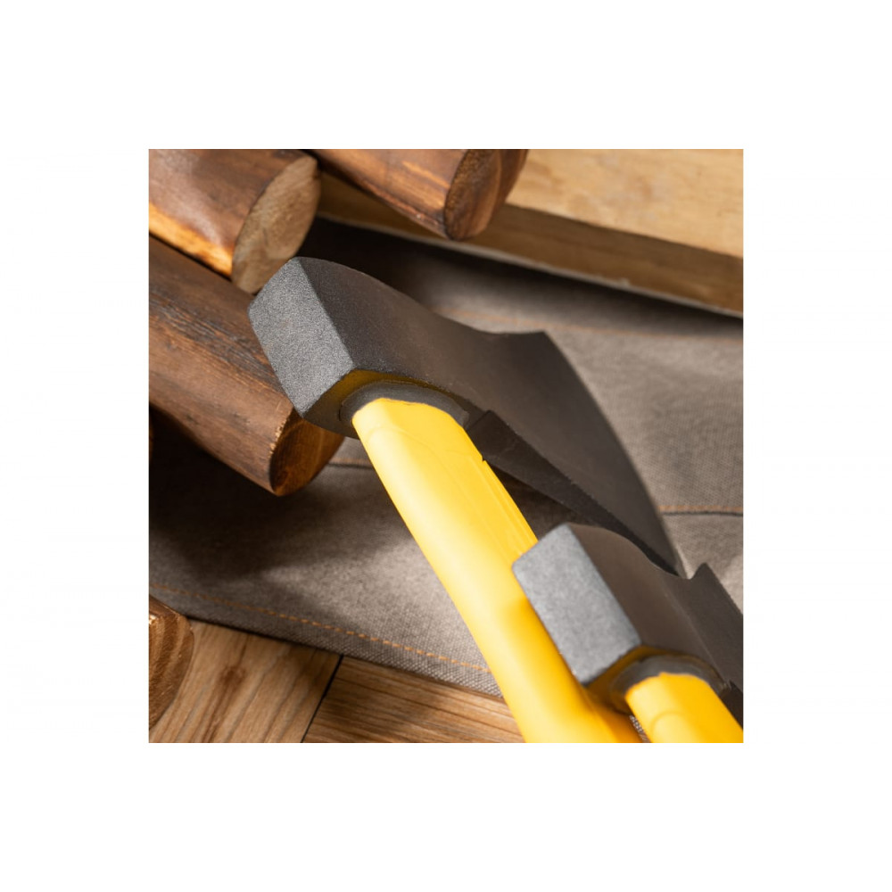 Лезвие топора изготовлено из высококачественной стали, что гарантирует его прочность и долговечность. Скругленный конец лезвия предотвращает застревание инструмента в древесине.