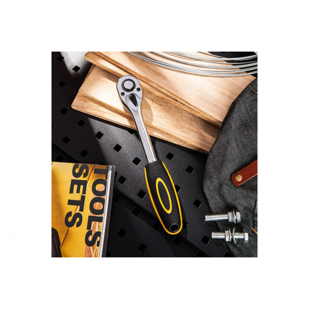 Благодаря своим характеристикам, трещотка DL2521 1/2", 255мм, 45 зубьев, быстросъемная, Deli является надежным и эффективным инструментом для работы с крепежными элементами в различных сферах деятельности.