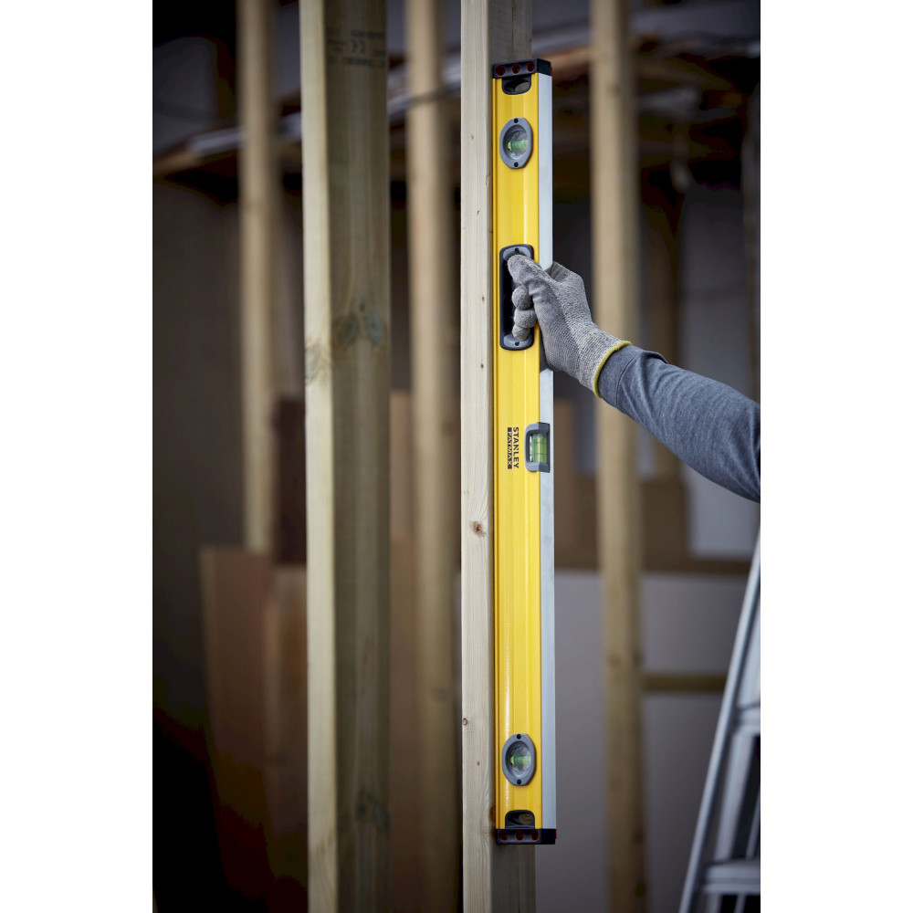 Профессиональный уровень 1-43-536 Fatmax level от STANLEY очень удобен в эксплуатации благодаря эргономичной рукоятке в форме отверстия, а две заглушки на концах обеспечивают дополнительную защиту от случайных ударов во время работы или падения инструмента. В процессе работы можно использовать две рабочие поверхности с одинаковой точностью.