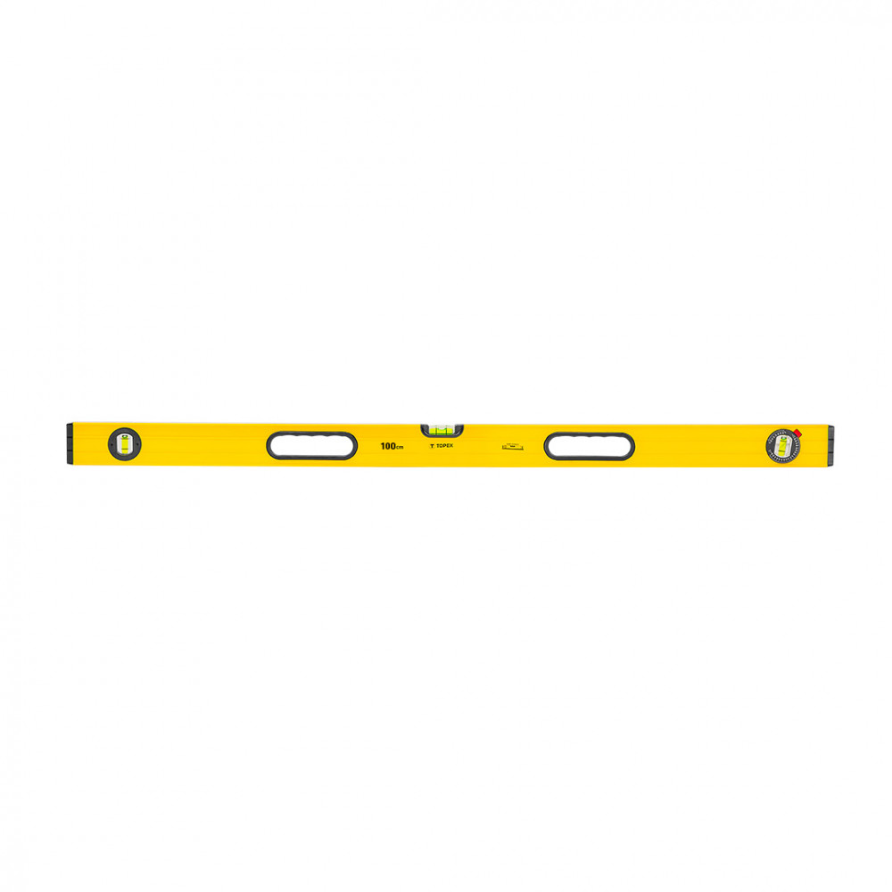 Уровень строительный алюминиевый TOPEX точность измерений +/- 0.5 мм/м. С 3 ампулами, в том числе с одной регулируемой, что облегчает работу. Изготовлен из прочного алюминиевого сплава. Шлифованная рабочая поверхность. Профилированные отверстия для захвата повышают комфорт и безопасность во время работы.