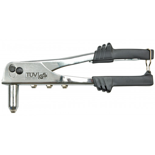 У одноручных заклепочников из двух рукояток только одна является подвижной. Неподвижная ручка является частью корпуса, а вторая предназначена для сжатия заклепки. При помощи этого типа заклепочника осуществляется установка клепок, диаметр которых не превышает 4, 9 мм.