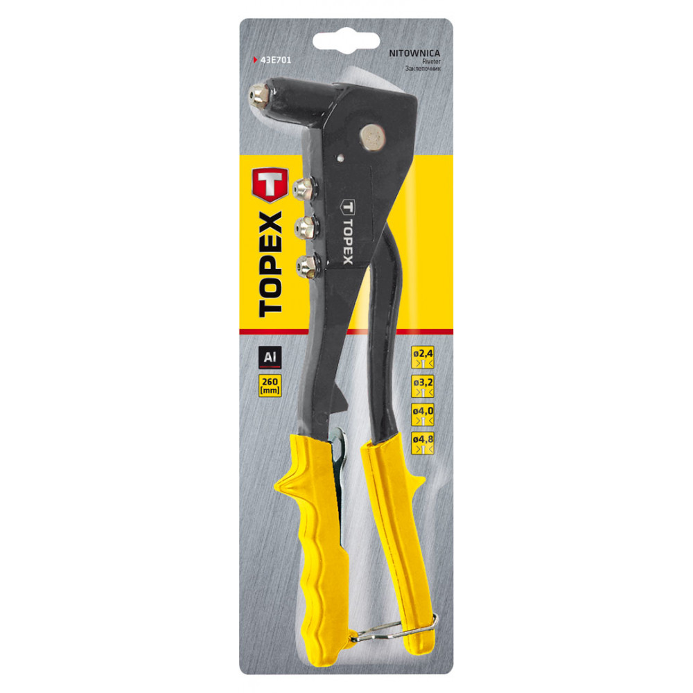 Заклёпочник 43E701 ТОРЕХ - качественный и эргономичный инструмент от производителя TOPEX по цене 864 ₽.