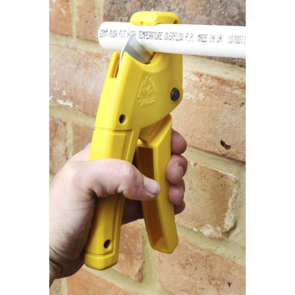 Благодаря своей удобной и практичной конструкции, этот труборез обеспечивает очень ровные и точные разрезы в процессе работы. При этом рукоятки инструмента позволяют прикладывать наибольшее усилие, а острые лезвия из высококачественной стали отлично справляются с материалом.
