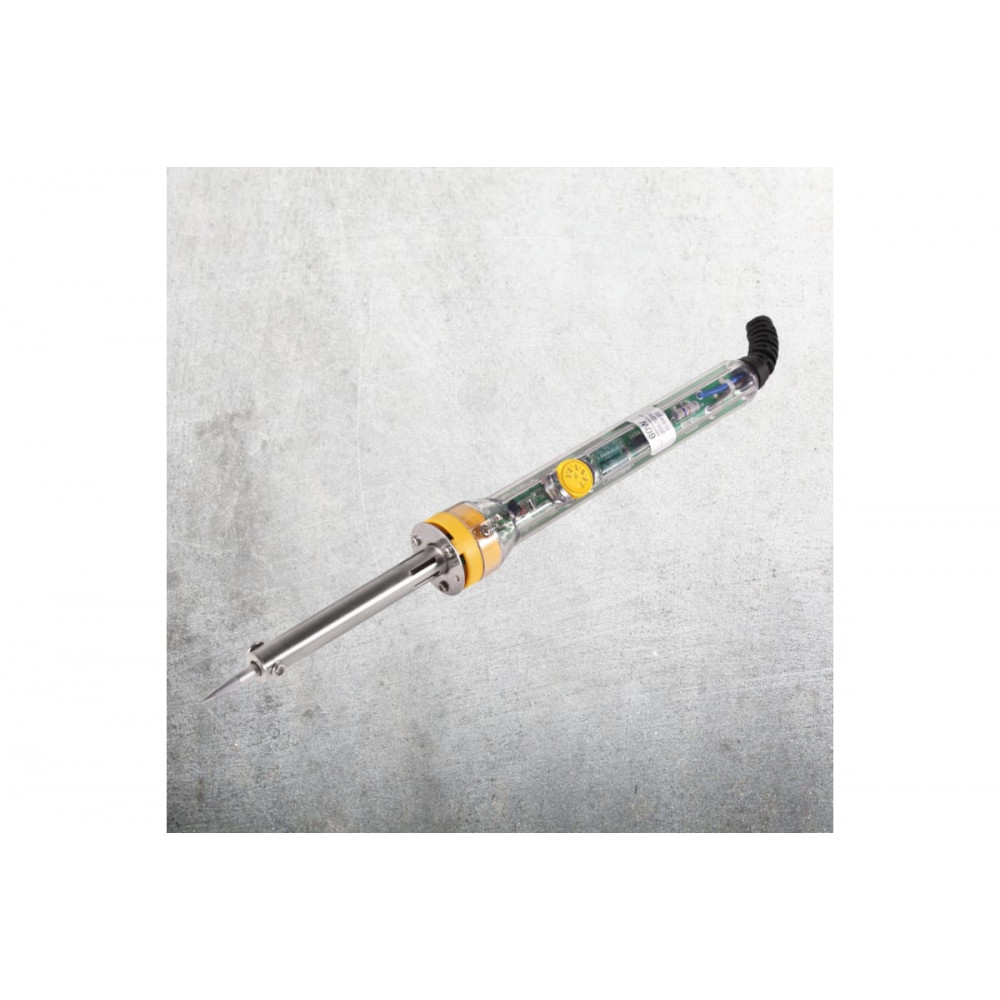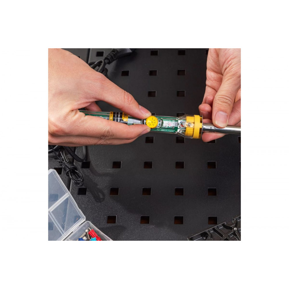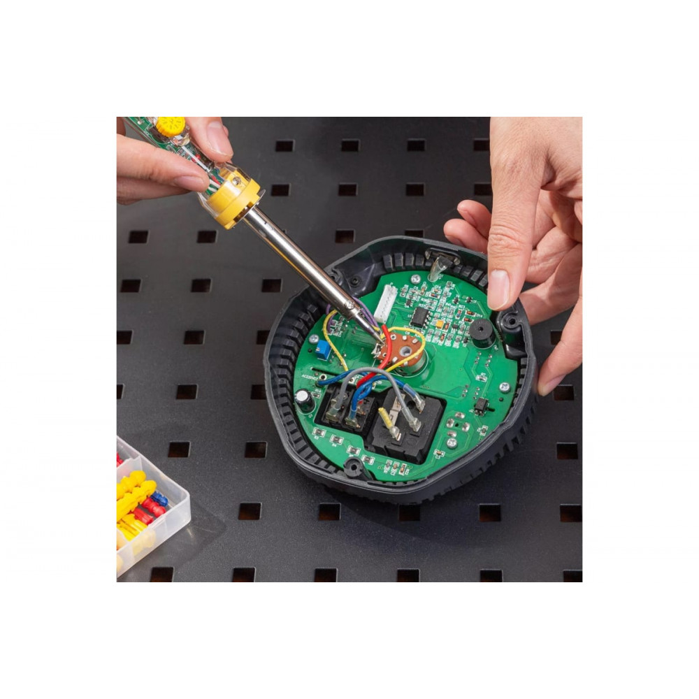 Паяльник оснащен керамическим нагревательным элементом, который обеспечивает быстрый нагрев и стабильную температуру. Он также имеет регулируемую температуру, что позволяет настроить ее в соответствии с типом и размером компонентов, которые нужно паять. Инструмент оснащен светодиодной индикацией, которая позволяет контролировать температуру и состояние паяльника. Он также оснащен защитой от перегрева и функцией автоматического отключения, что обеспечивает безопасность во время работы.