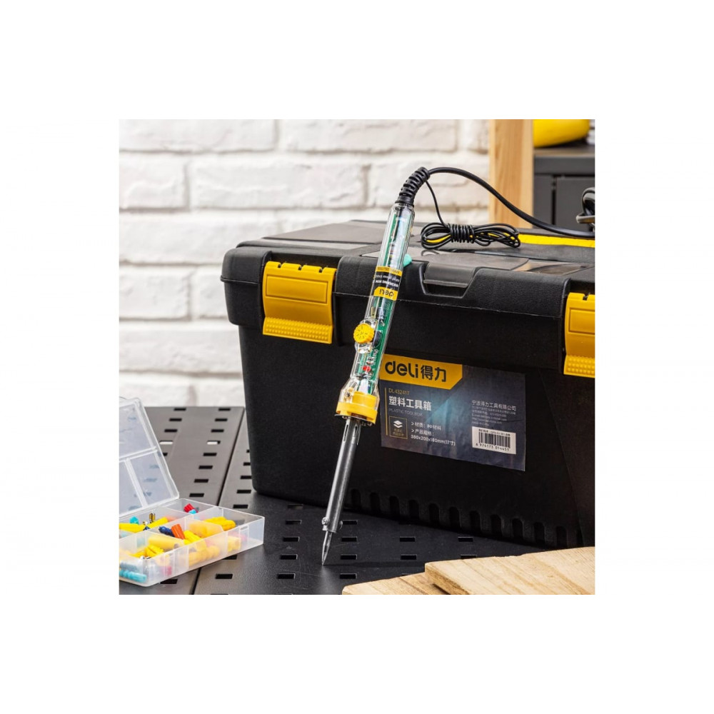 Корпус паяльника выполнен из высококачественного пластика, который не нагревается во время работы и не вызывает ожогов. Он также обладает хорошей устойчивостью на поверхности и не скользит во время использования. Паяльник DL8820 60 Вт, Deli является надежным и удобным инструментом для пайки различных компонентов. Он обладает всеми необходимыми функциями и характеристиками для комфортной и безопасной работы.