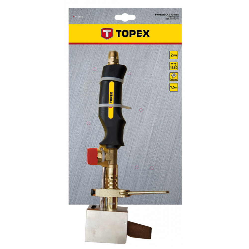 Газовая горелка TOPEX мощность 2 кВт, рабочая температура 1850°C. В набор входит резиновый шланг длиной 1.5 м. Горелка предназначена для пайки металлических элементов. Отлично подходит для жестяницких работ. Бренд TOPEX предназначен для домашних мастеров.