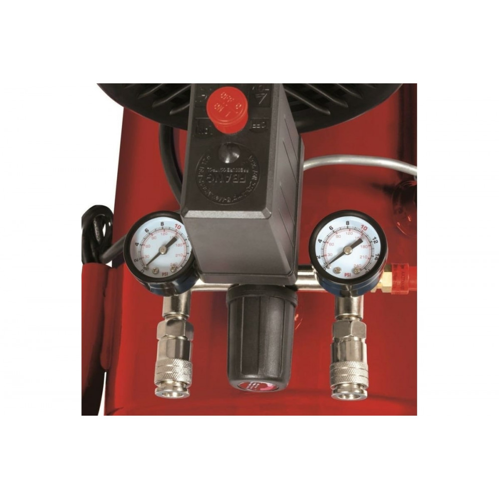 Устройство оснащено регулятором давления с максимальной настройкой до 10 бар, обеспечивая высокую производительность при выполнении различных задач. Манометр и быстроразъемная муфта позволяют контролировать и регулировать рабочее давление. Масляная система смазки обеспечивает долгий срок службы компрессора, а смотровое окно помогает следить за уровнем масла. Безопасность использования гарантируется благодаря обратному и предохранительному клапанам.