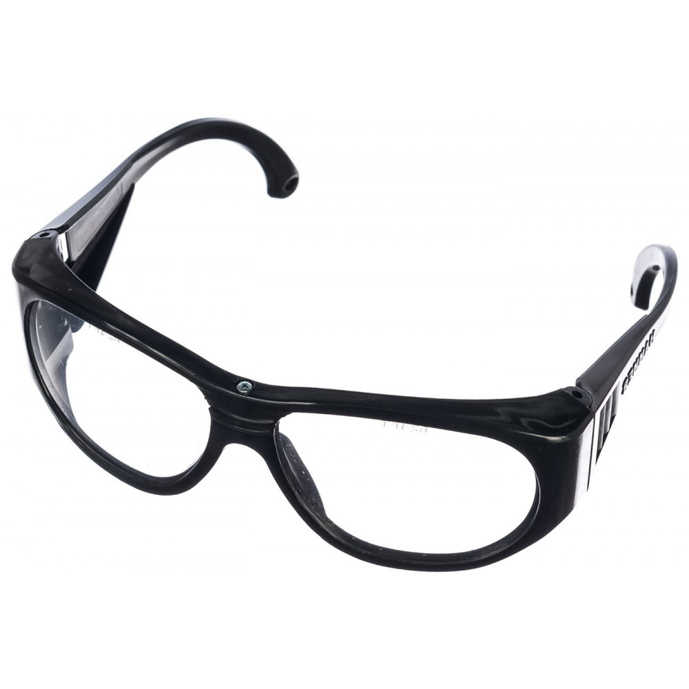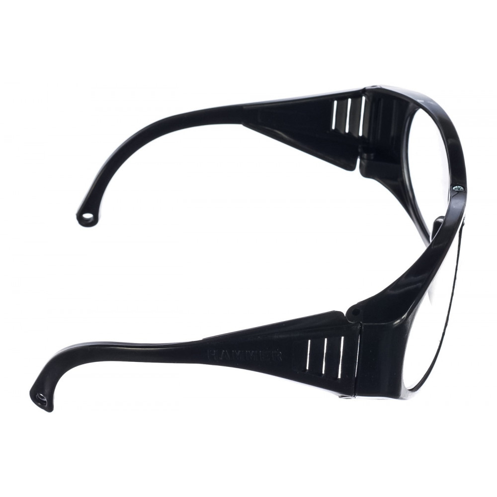 Вентиляционные отверстия на дужках для эффективного воздухообмена, расположенными под углом, исключающим попадание пыли и твердых частиц в пространство под очками. Защитные прозрачные стекла сферической формы соответствуют 1 классу оптики.