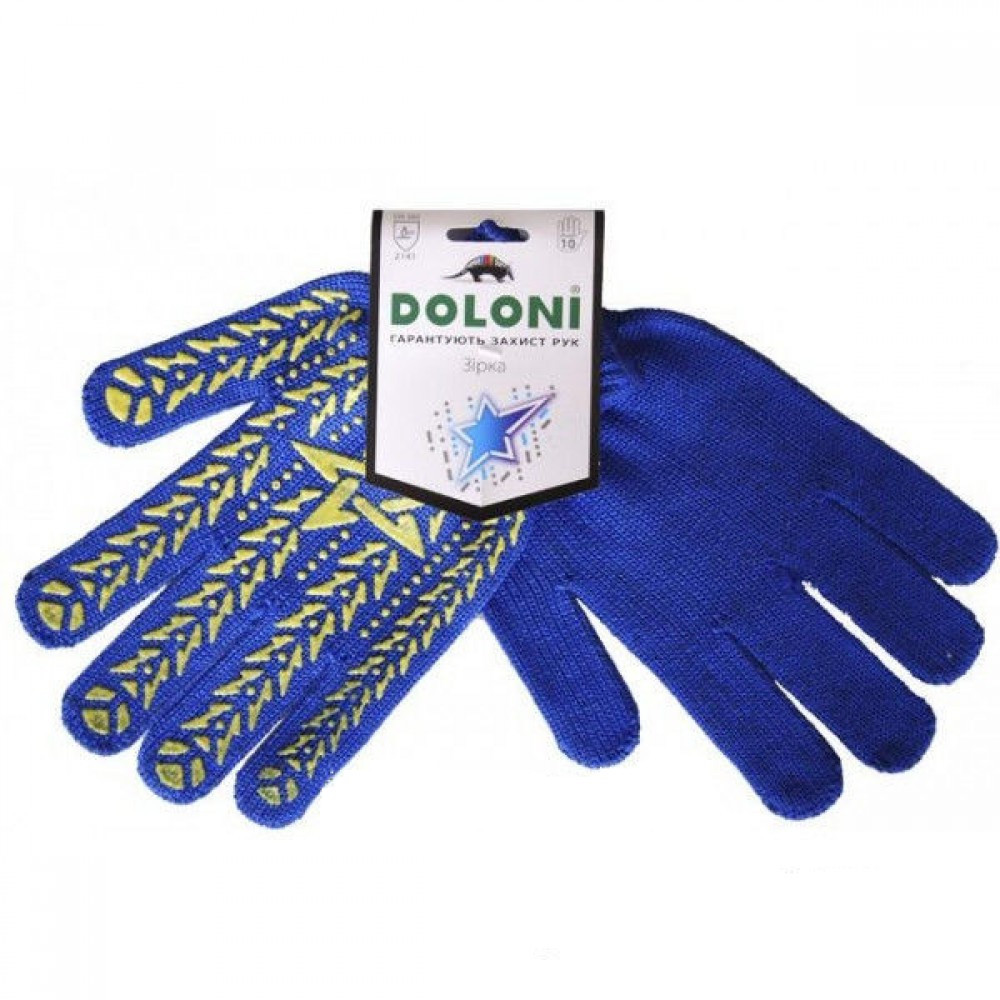 Перчатки 10321 от TM DOLONI синие с рисунком Звезда хорошо подходят для легких и точных работ. Используются при погрузочно-разгрузочных работах, с инструментами, для разных работ в строительстве, машиностроении, пищевой промышленности и т.п.