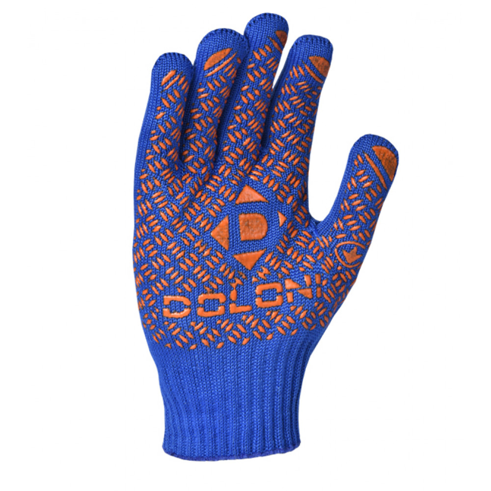 Перчатки 4450 от TM DOLONI трикотажные бесшовные с эластичной манжетой и ПВХ-рисунком на ладони. Хорошо подходят для легких и точных работ. Используются при погрузочно-разгрузочных работах, с инструментами, для разных работ в строительстве, машиностроении, пищевой промышленности и т.п.