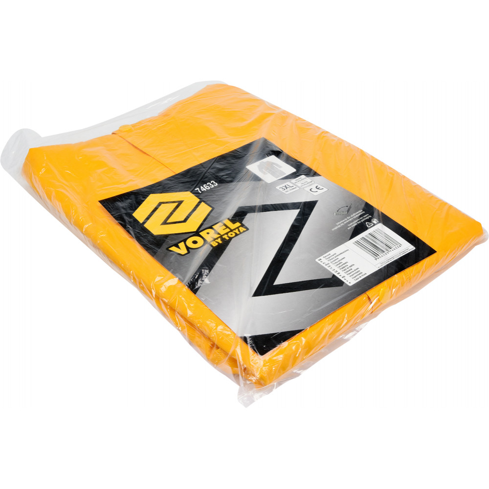 Водонепроницаемый плащ-дождевик 74633 желтого цвета от VOREL имеет размер XXXL и выполнен на 30% из полиэстера и на 70% из ПВХ. Плащ оснащен двумя внешними карманами и системой вентиляции в задней части.