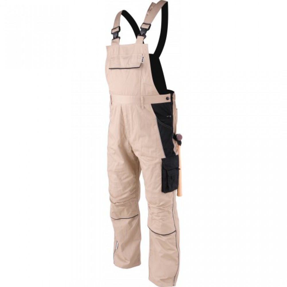 Рабочий полукомбинезон YT-80449 DOHAR предназначен для защиты при строительных, транспортных и механических работах. Светло-бежевого цвета с черной фурнитурой. Выполнен из плотного прочного материала на основе хлопка и полиэстера / 35% и 65% /.