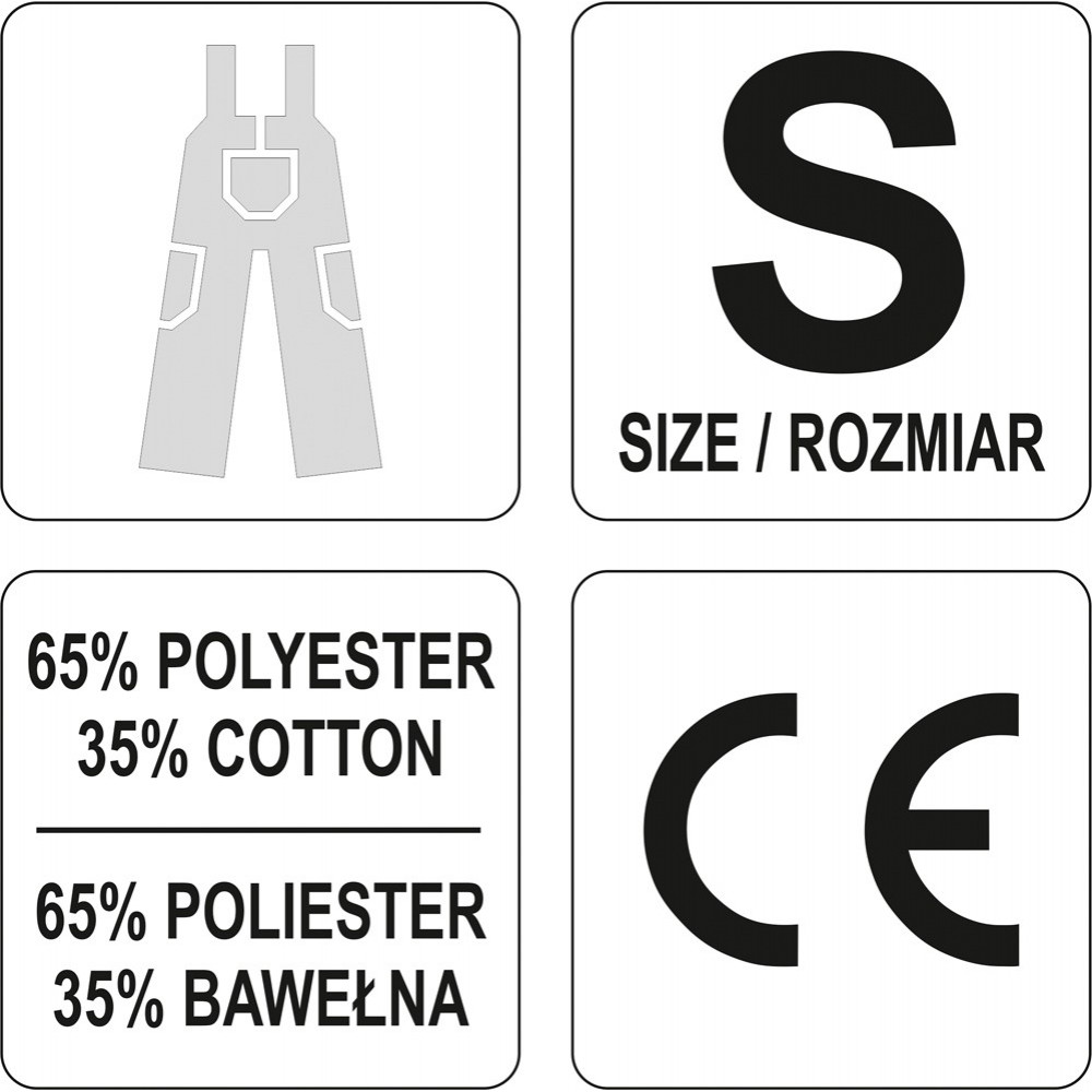 Рабочий полукомбинезон YT-8030 YATO соответствуют требованиям Регламента (ЕС) 2016/425 для рабочей одежды категории I.