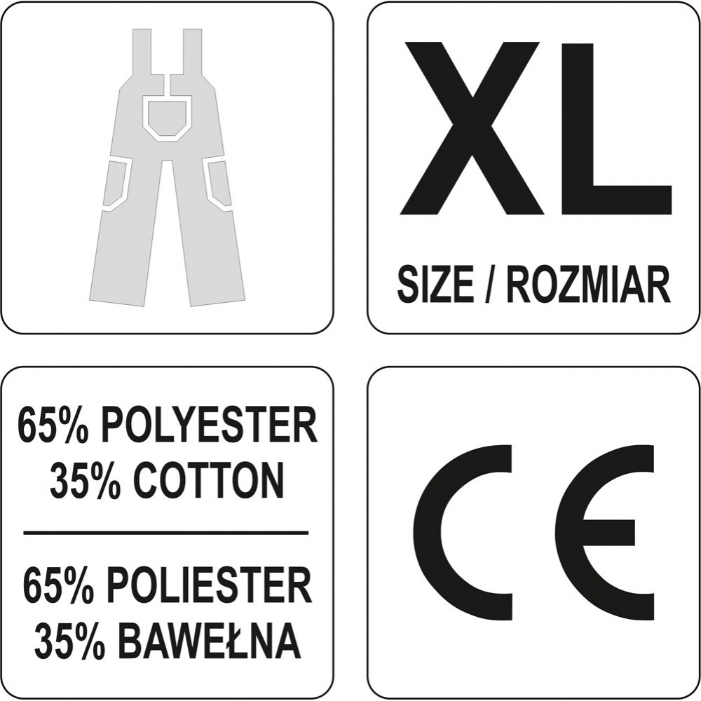 Рабочий полукомбинезон YT-8033 YATO соответствуют требованиям Регламента (ЕС) 2016/425 для рабочей одежды категории I.