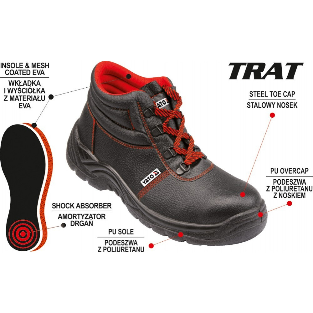 Ботинки серии TRAT от TM YATO – рабочая обувь европейского качества, предназначенная для защиты от холода, осадков и загрязнений, обладает повышенной износоустойчивостью и надежностью.