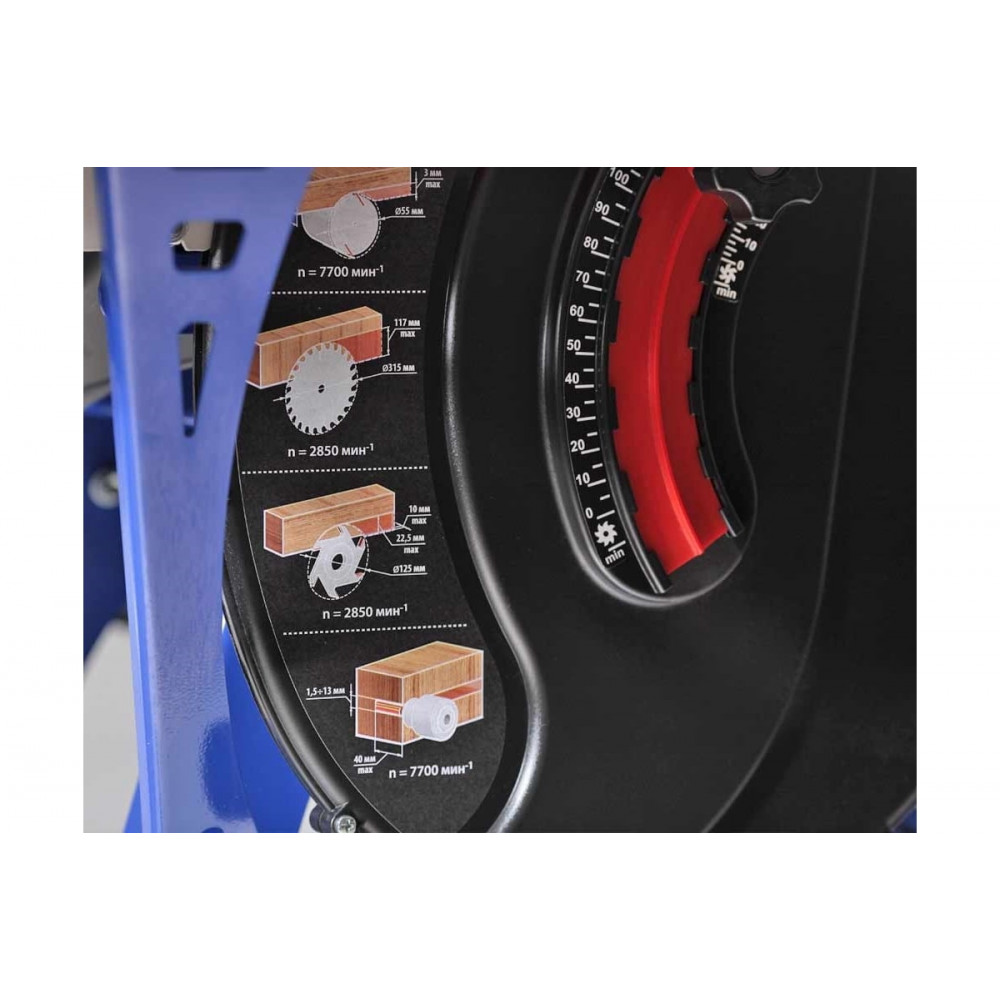 Распил осуществляется как вдоль, так и поперек. Допускается резание деталей по ребру под заданным углом. Высокая скорость вращения диска гарантирует быстрый рез и чистую линию распила. Максимально допустимая толщина заготовки составляет 117 мм, ширина - 280 мм (при использовании комбинированной линейки). Размер рабочей поверхности станка - 872х532 мм.