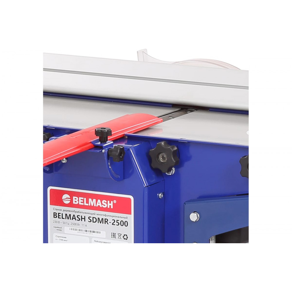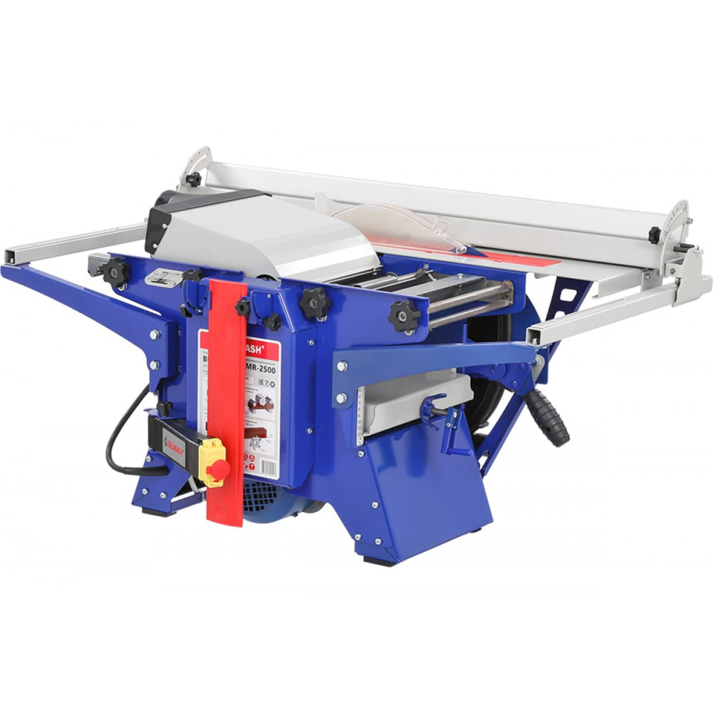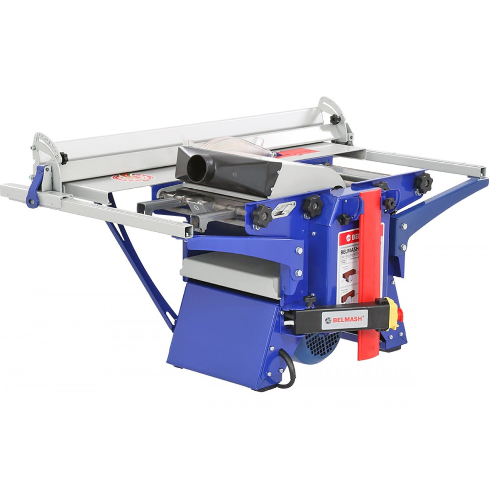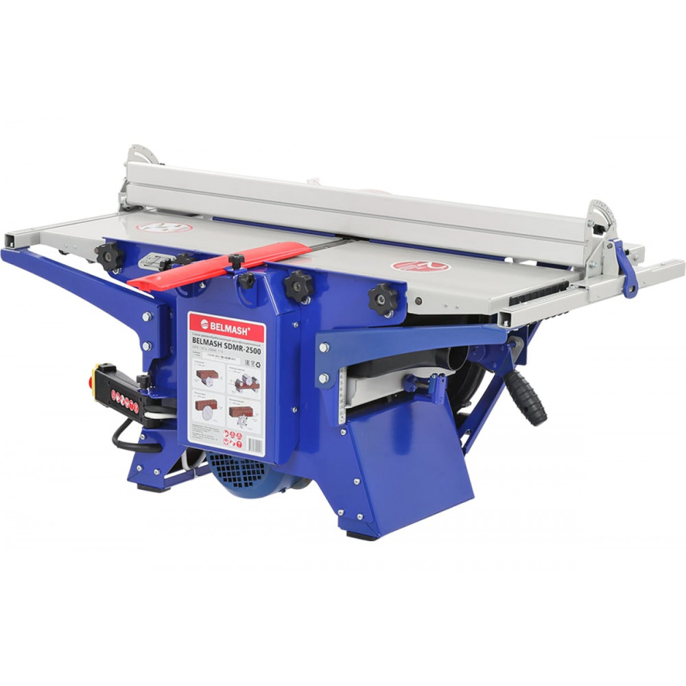Деревообрабатывающий станок многофункциональный Белмаш SDMR-2500 используется для универсальной обработки деревянных заготовок. Основные функции изделия: распиловка, строгание, рейсмусование, фрезерование. Небольшие размеры позволяют использовать оборудование в домашних мастерских и на производствах без подключения к силовым линиям 380 В. Комплектация включает в себя необходимое оборудование для проведения работ всех видов. Настольная конструкция обладает необходимым весом и жесткостью, чтобы справляться с вибрацией при работе. Распиловку можно вести под углом до 45 градусов. Для пиления предусмотрен рабочий стол размерами 827х528 мм. Габариты стола для строгания составляют 912х284 мм. При рейсмусовании обеспечивается автоматическая подача заготовки со скорости до 6 метров в минуту. Для фрезерования используются фрезы диаметром 125 мм.