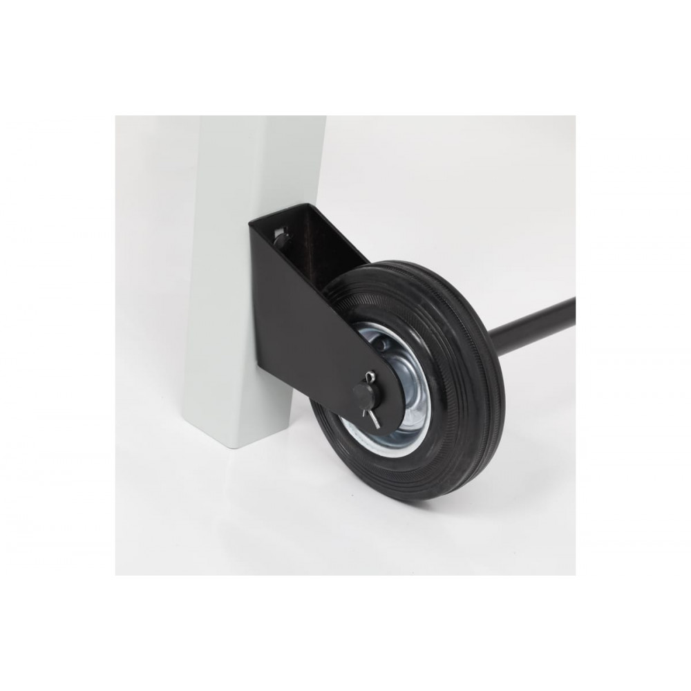 Материалом стола и параллельного упора служит легкий алюминий. Угловой упор из пластика дает возможность распиливать заготовки под заданным углом.