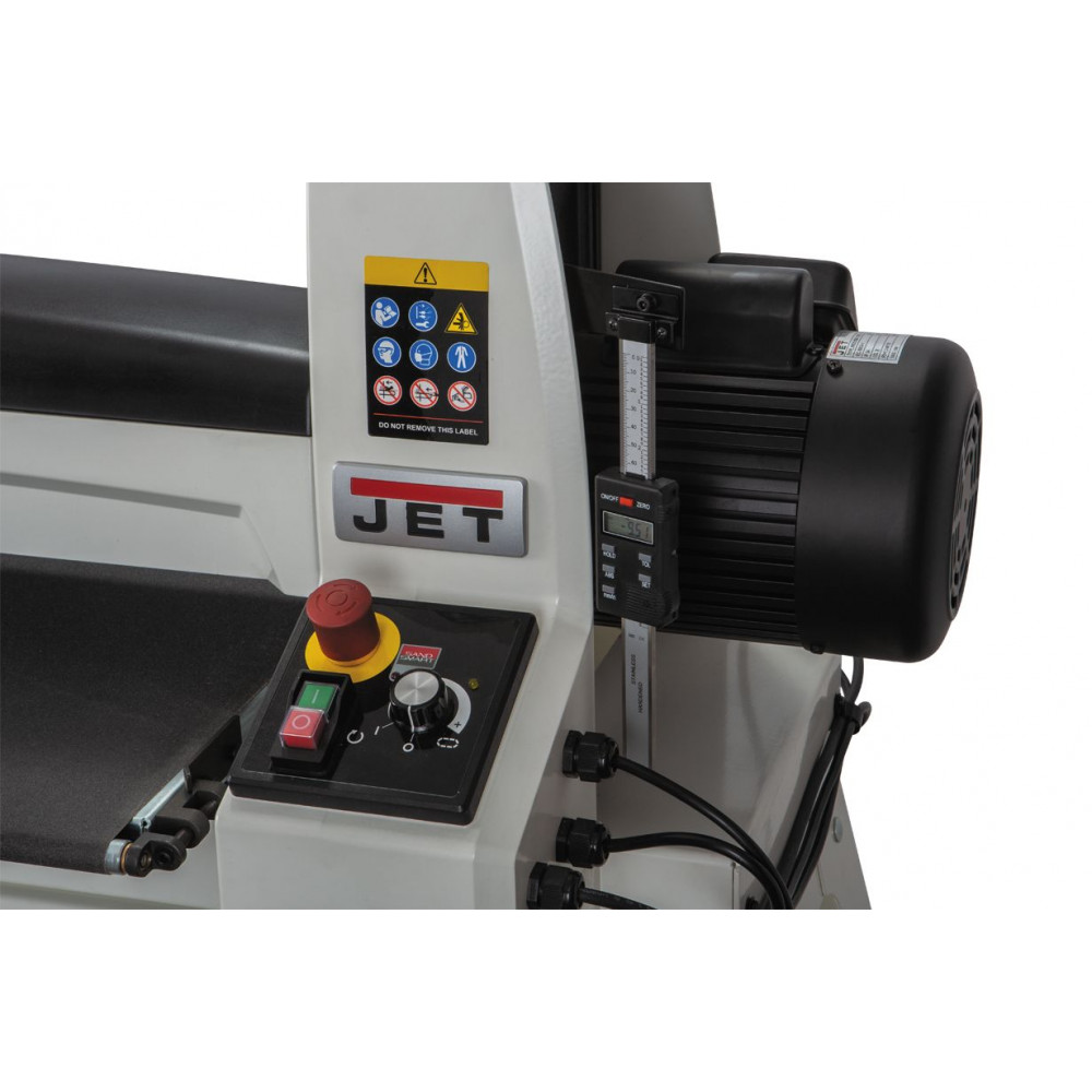 Если перед вами стоит задача качественно обработать деревянную заготовку шириной до 1270 мм, то шлифовальный барабанный станок JWDS-2550 от бренда JET отлично справится с этим. Этот станок профессионального класса имеет консольное расположение рабочего модуля. Оснащен специальным устройством подачи заготовки автоматического типа в виде конвейера с механическим приводом. Управлять скоростью можно с помощью SandSmart контролера, который способен отследить величину нагрузки на основной двигатель, по потребляемому им току. В случае перегрузки мотора скорость подачи автоматически снижается. О том, что вы перешли в этот режим, вам подскажет лампочка-индикатор. А когда нагрузка на мотор нормализуется, лампочка погаснет, а скорость конвейера вернется в прежний темп.