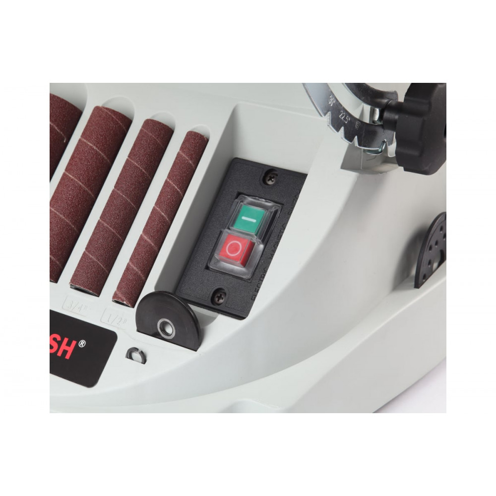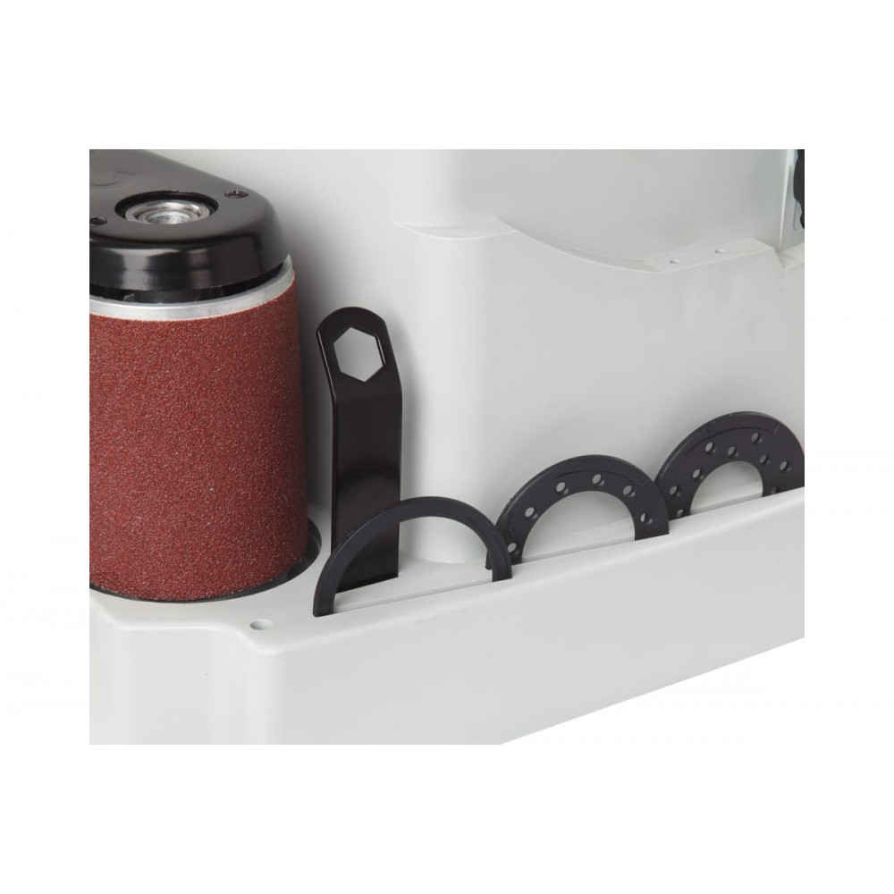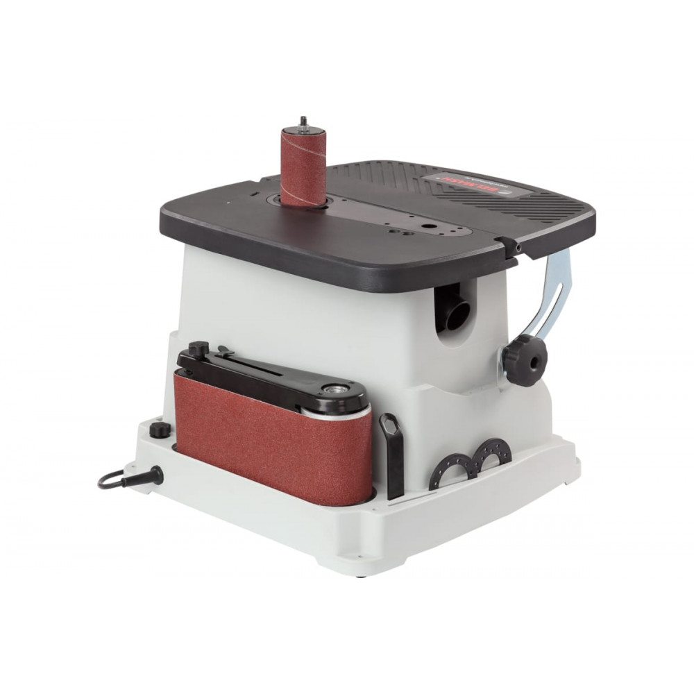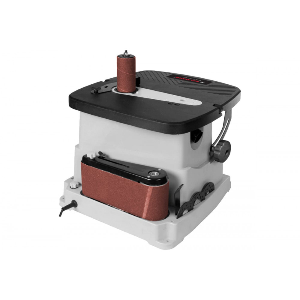 Ленточный узел имеет два обводных ролика разного диаметра, вокруг которых можно работать с вогнутыми поверхностями и прямой участок с металлической подложкой для плоских деталей из дерева.