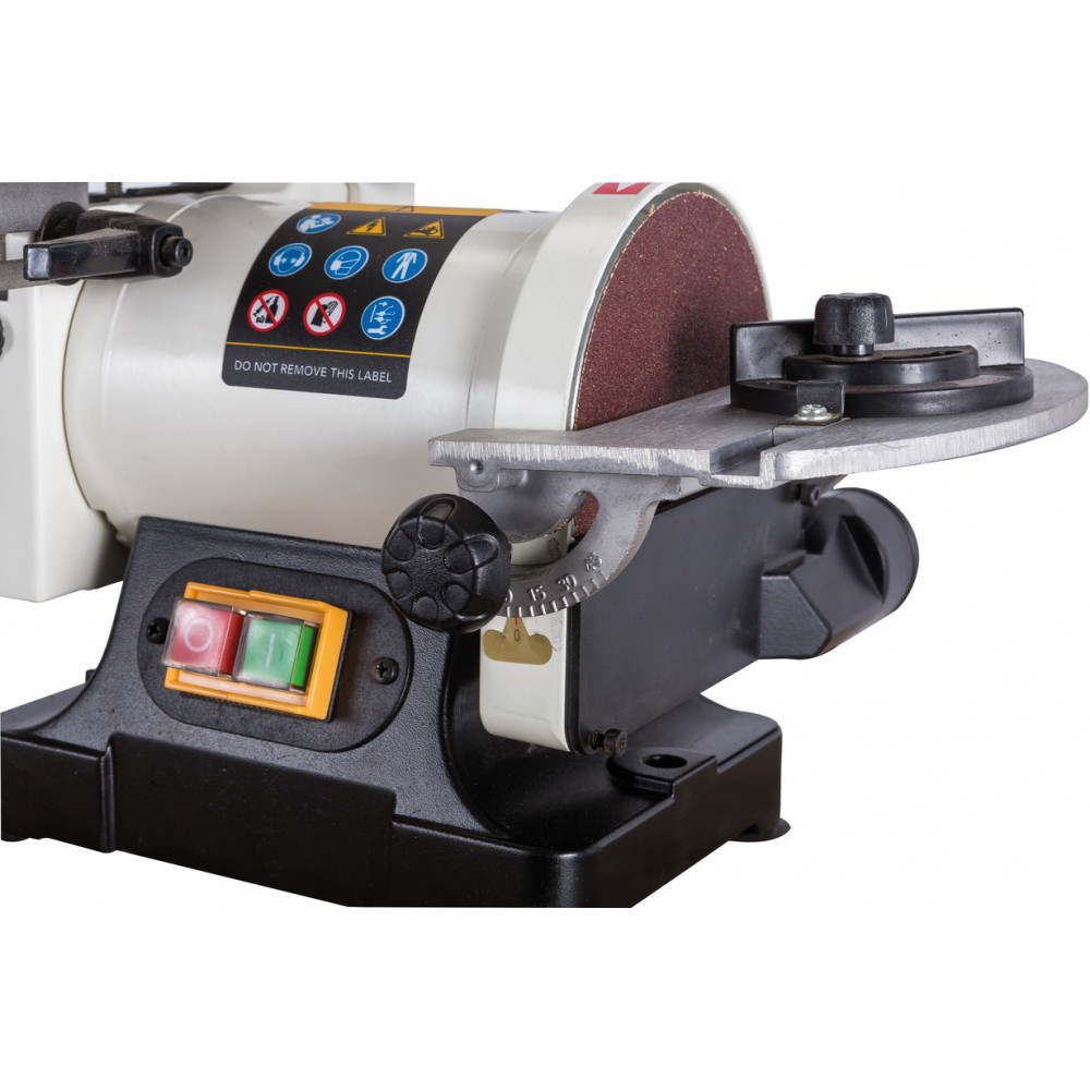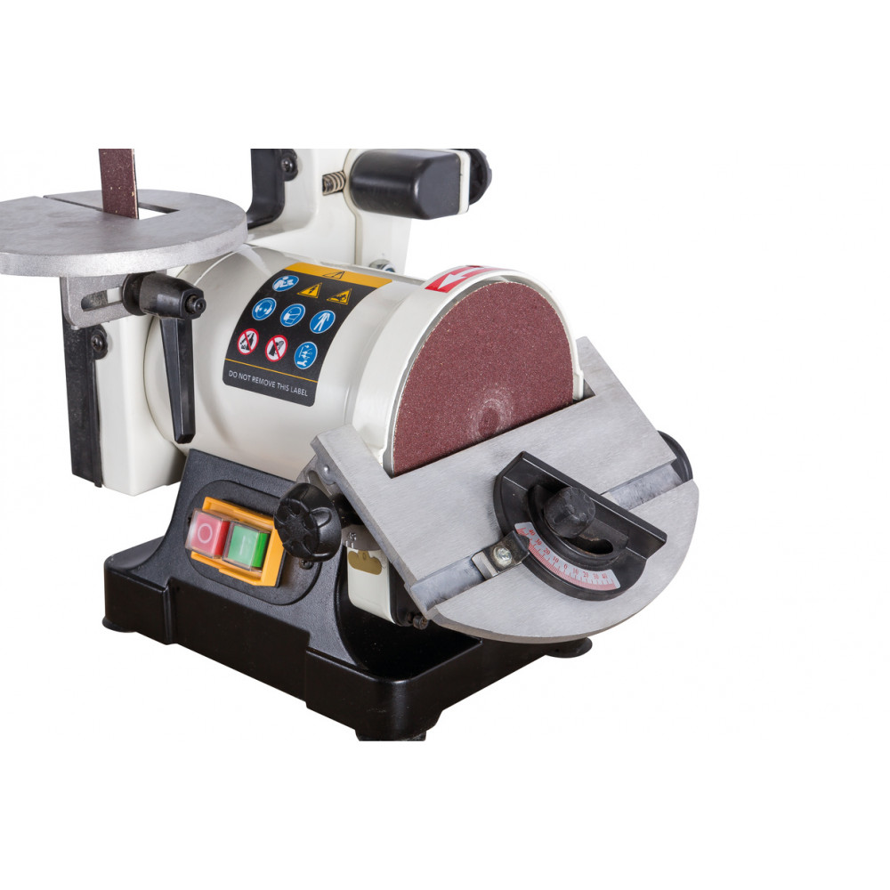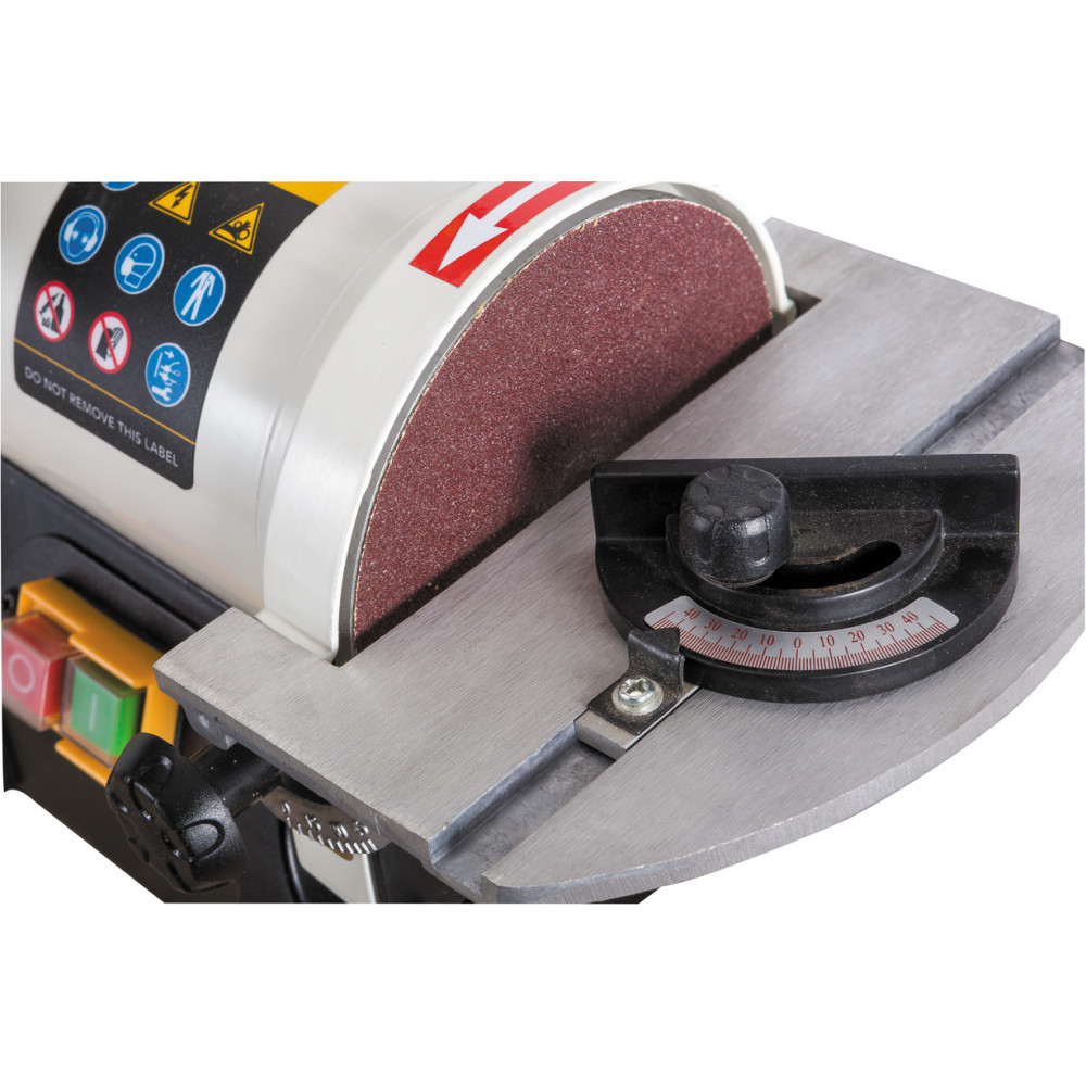 Дисково-шлифовальный узел оборудован тарелкой-подложкой, к которой с помощью липучки крепятся абразивные листы. Благодаря твердой опорной поверхности можно выравнивать плоскости, формировать грани и углы заготовок. Регулируемый опорный стол и подвижный угловой упор позволяют добиться высокой точности и повторяемости результата.