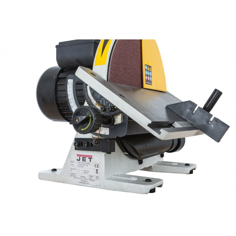 Настольный дисковый шлифовальный станок JDS-12X-M от швейцарской марки JET предназначен для «хобийной» эксплуатации и небольших мастерских. Отличный вариант совмещения высокой мощности и массивной устойчивой конструкции. Корпус-основание, рабочий стол и диск – изготовлены из тяжелых чугунных отливок, что гарантирует отсутствие вибраций и жесткость. Это положительно сказывается на качестве шлифования и комфорте при всевозможных операциях. Абразивным материалом служат круги на бумажной основе с клеевым покрытием. После покупки переходного диска SK300 с «липучкой» появляется возможность применять круги типа Velcro, более благоприятны при замене. Шлифовальный диск оснащен тормозом, с целью повысить удобство использования и обезопасить оператора.