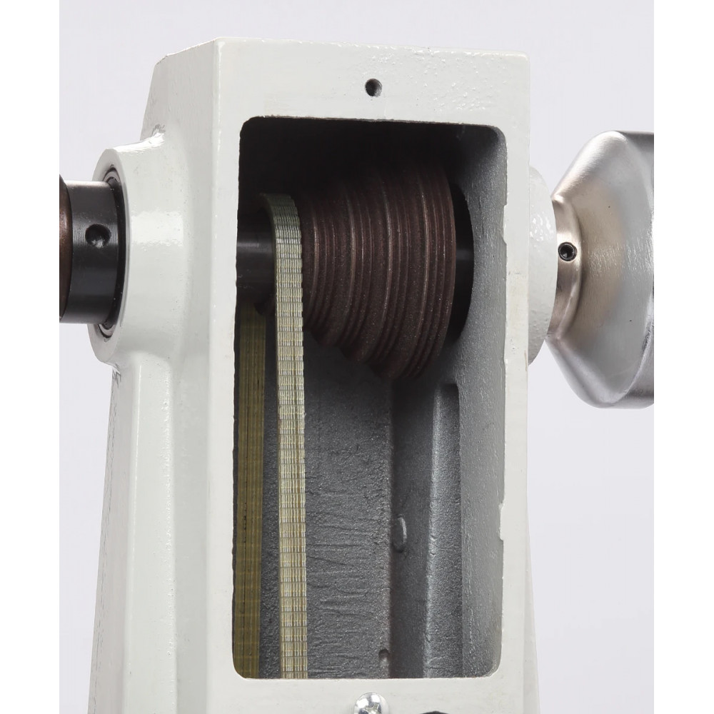 В зависимости от выполняемой задачи, а также твердости материала пользователь имеет возможность выбрать одну из пяти возможных скоростей вращения - 680 об/мин, 1000 об/мин, 1420 об/мин, 2000 об/мин или 2770 об/мин. Настройка осуществляется путем перестановки приводного ремня.