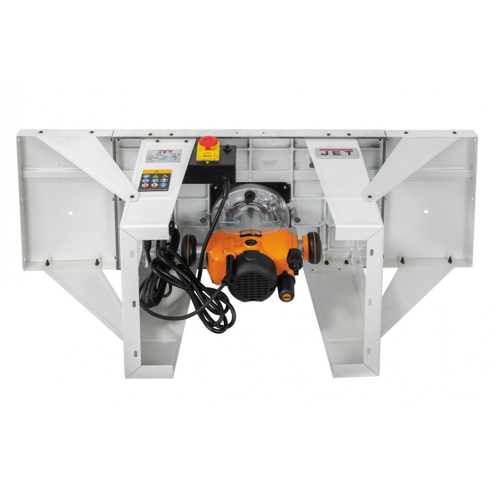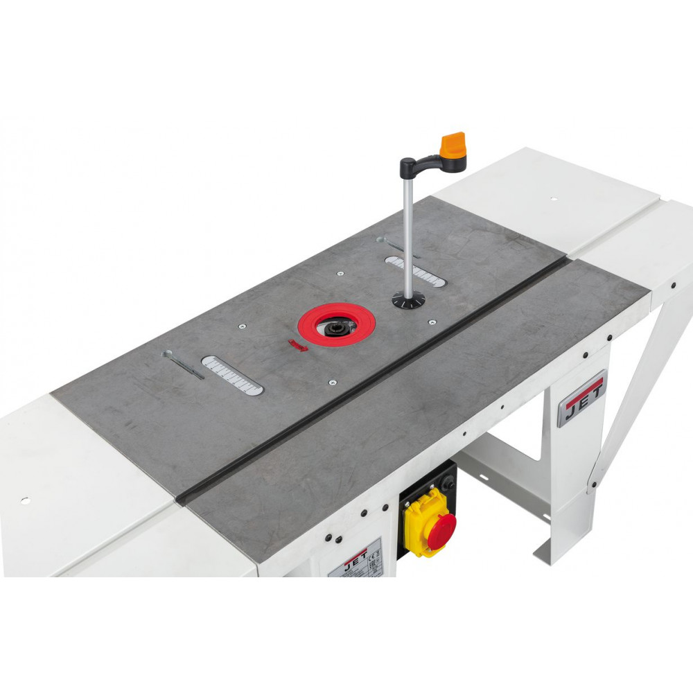 Выигрышным свойством данной модели является то, что стол из чугунного, а не алюминиевого листья. Производитель поработал над усовершенствованием и в сравнии с предшествующей модификацией, вес фрезерного стола JRT-1 увеличился более чем вдвое. Добавочный вес положительно влияет на качество фрезерования и на удобство работы. Стол оснащается угловым подвижным упором и содержит паз для него. Плюс ко всему, производителями предусмотрены: фрезерный упор с ограждением и патрубком пылеотсоса; магнитный пускатель; съемные удлинители из листовой стали.