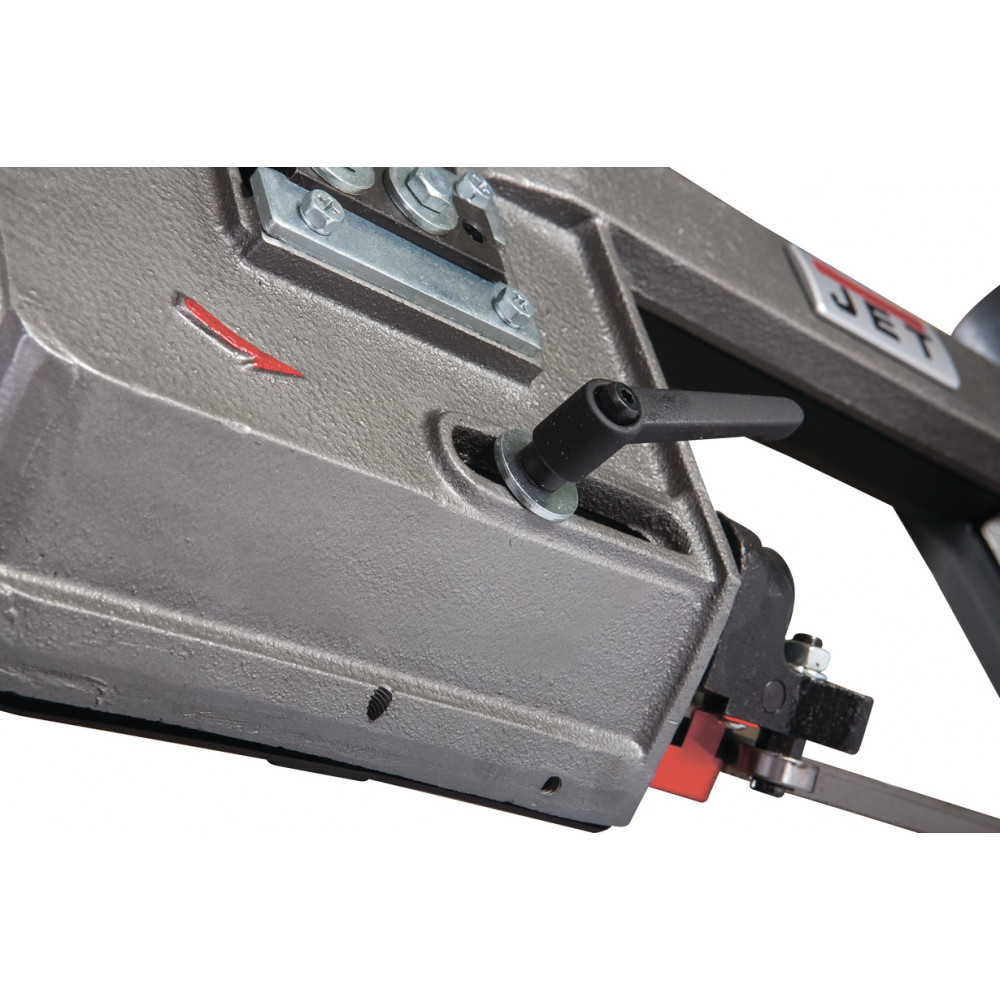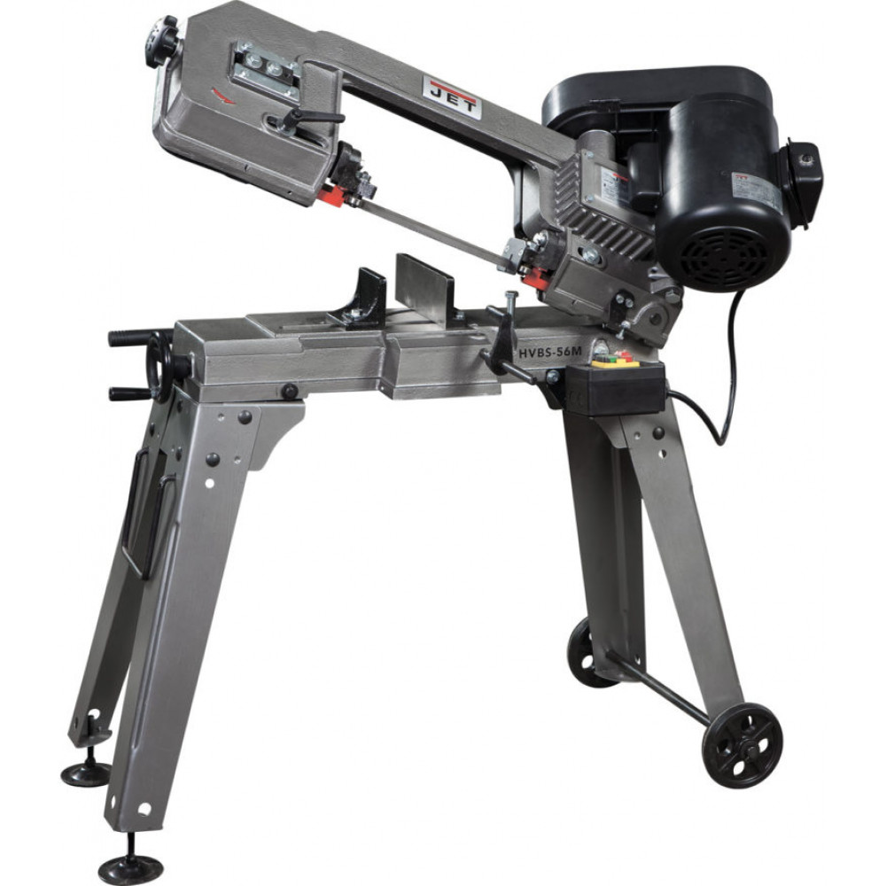 Если перед вами стоит задача обработать металлические заготовки диаметром до 125 мм, то ленточнопильный станок HVBS-56M от JET умело справится с этим. Модель предназначена для мелкосерийного производства и для персональной работы. Станок оборудован тяжелой рамой, которая во время работы опускается в ручном режиме непосредственно пользователем. Пользователи представленной модели отмечают ее конструкцию, которая соответствует оборудованию американского типа и необходима для распила заготовок под прямым углом. А пиление заготовок под разными углами производится благодаря повороту губок тисков в диапазоне 0-45°.