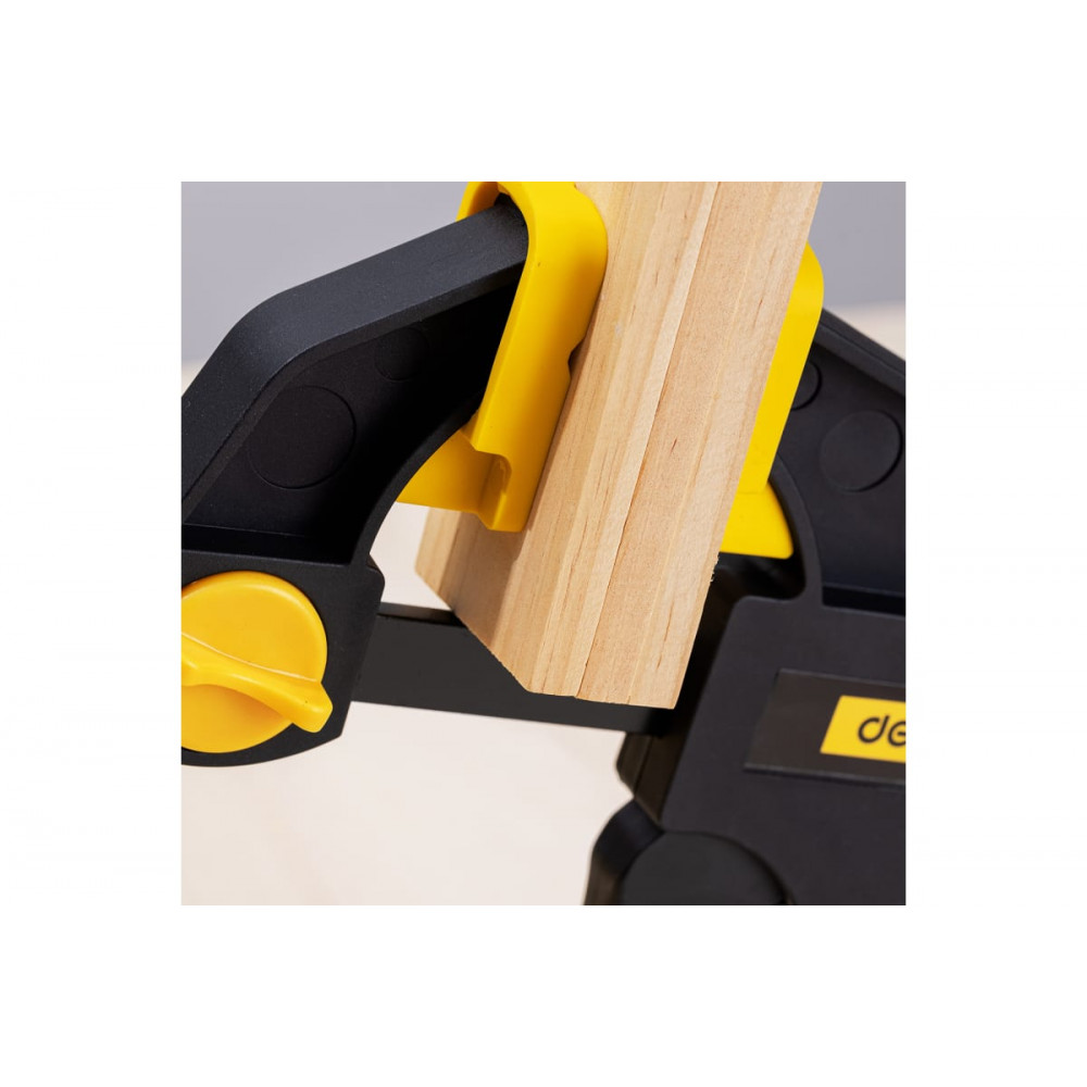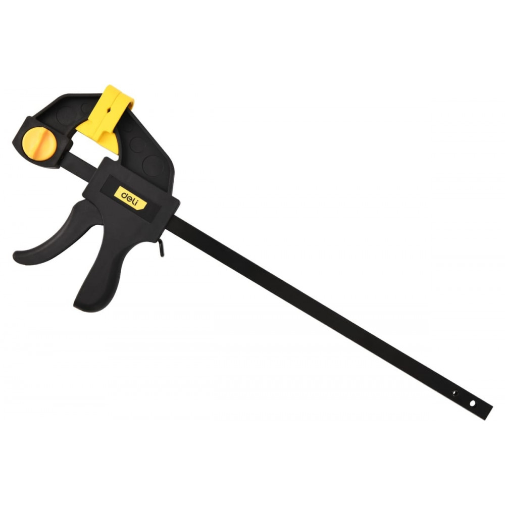 Быстрозажимной механизм позволяет быстро и легко зафиксировать деталь, а также быстро и удобно открепить ее. Струбцина имеет регулируемые зажимы, которые позволяют настроить ее под различные размеры деталей. Струбцина DL110112 пистолетная быстрозажимная, 300x70мм Deli является идеальным выбором для тех, кто занимается ремонтом, строительством или другими работами, где требуется надежное и быстрое закрепление деталей.