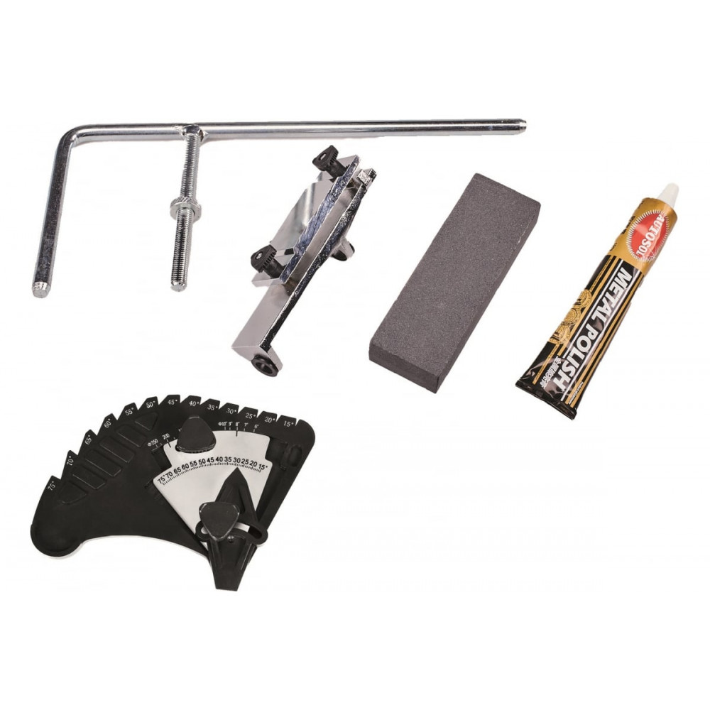Угловой калибр обеспечивает точность угла заточки, чтобы ваши инструменты были идеально заточены. Вспомогательные принадлежности легко крепятся к станку с помощью специальных штанг, что делает процесс работы удобным и безопасным. Резиновые ножки поглощают вибрацию и обеспечивают устойчивость станка, что важно для качественной заточки.