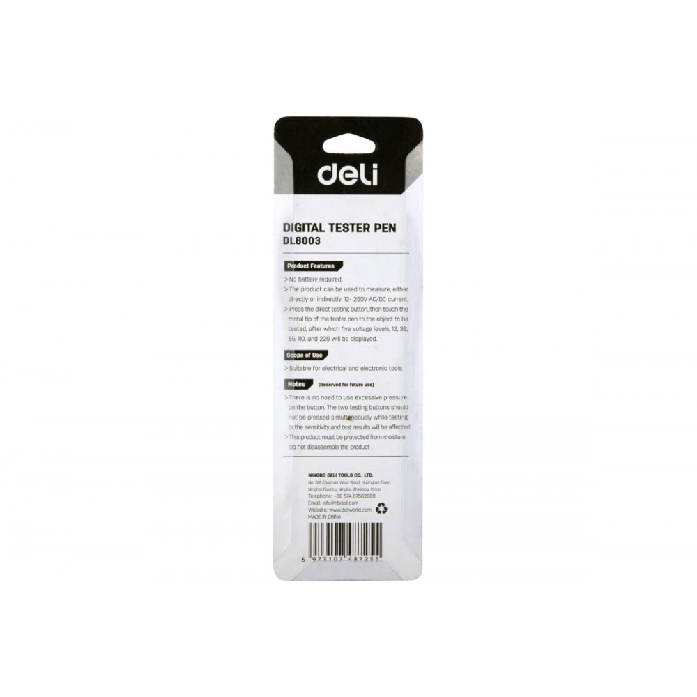 Индикатор напряжения DL8003 цифровой 12-250В Deli поможет быстро определить напряжение и избежать возможных проблем с электричеством.