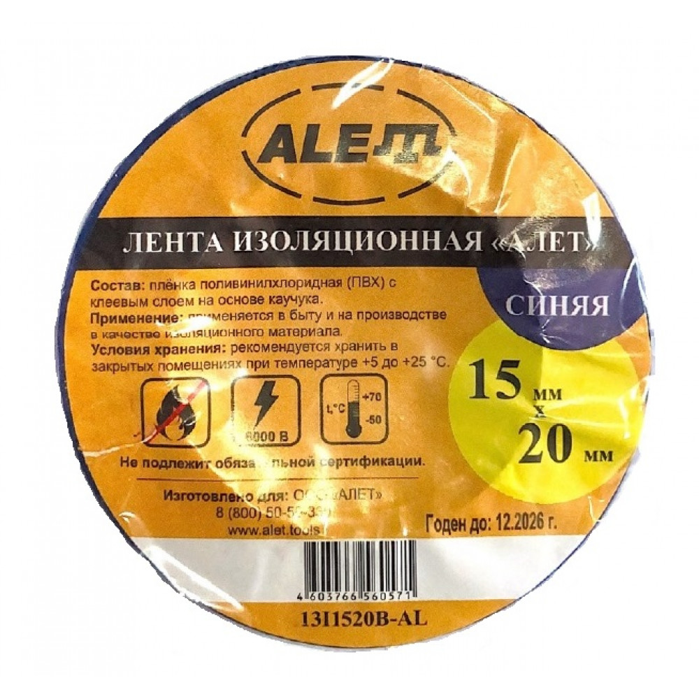 Изолента ПВХ ТМ «ALET» применяется для работы с электроизоляцией и проводами. Выполнена из ПВХ пленки с клеевым слоем на основе каучука. Обладает высоким уровнем адгезии к большинству материалов. Изделие используют при строительных и авторемонтных работах для соединения труб и различных деталей. Электрическая прочность изоленты – 6000 В.